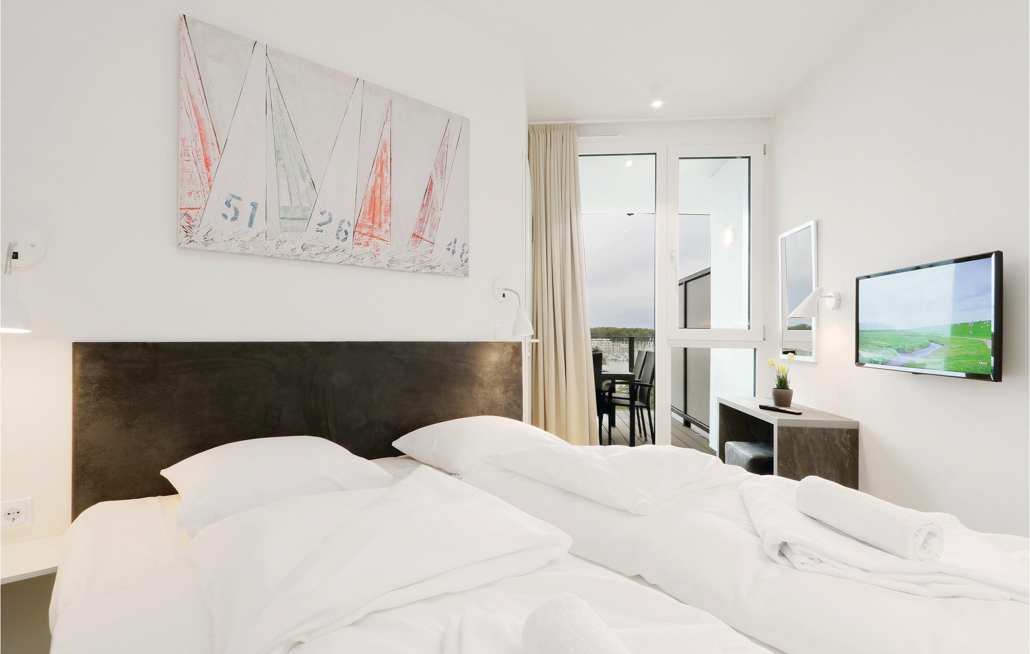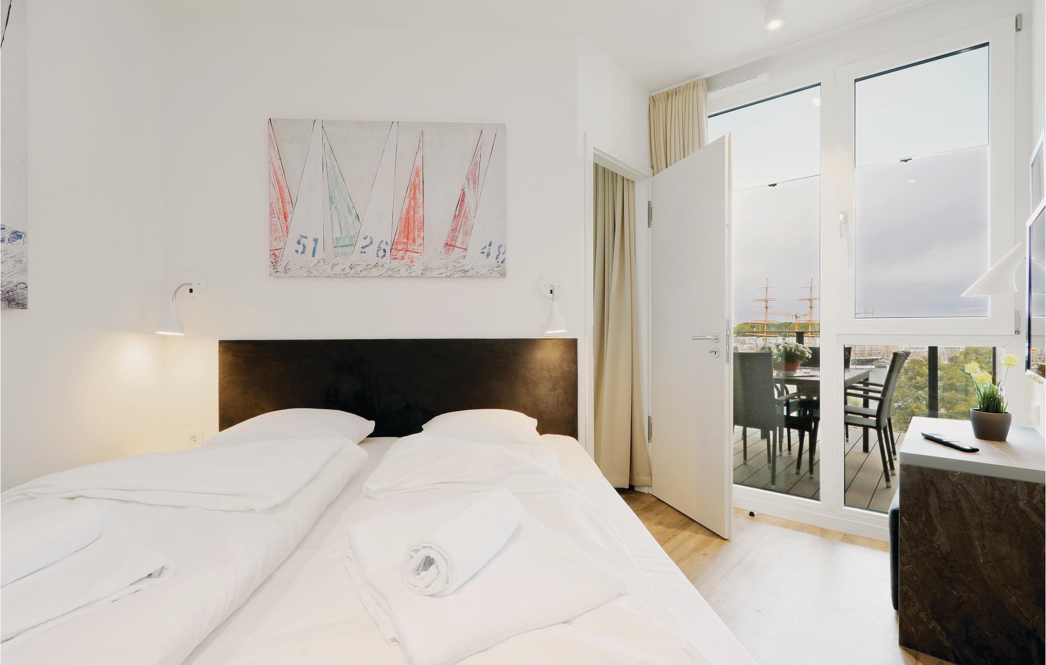 Ihre Ferienwohnung befindet sich im 5. Obergeschoss der Anlage, weshalb Sie eine einmalige Aussicht genießen. Von hier aus können Sie auf den Priwall, den Sandstrand sowie die Hafenausfahrt mit den vorbeiziehenden Schiffen blicken.