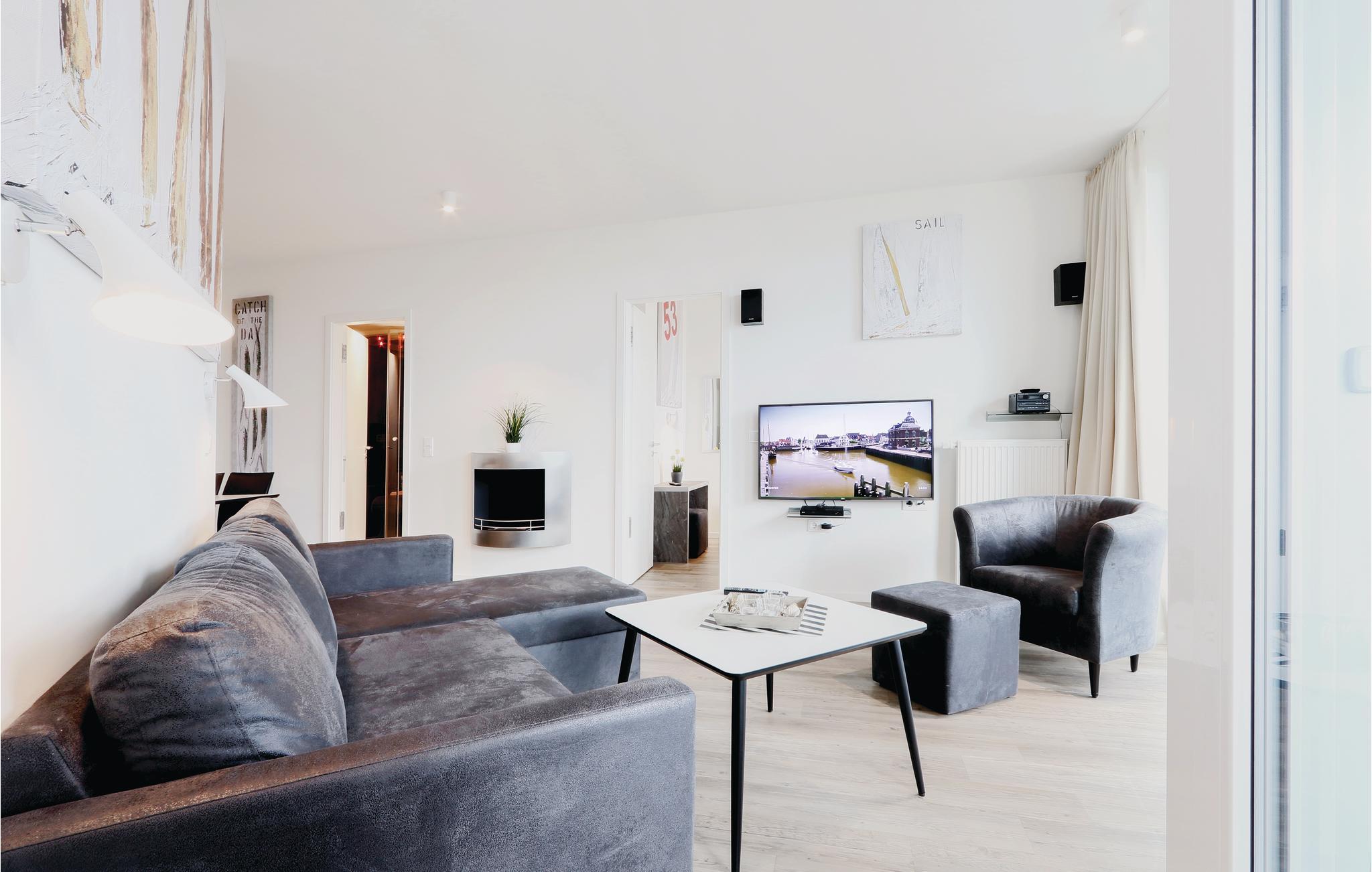 Die Wohnung verfügt über zwei separate Schlafzimmer mit jeweils einem gemütlichen Doppelbett. Im Wohnbereich können Sie es sich vor dem wohligen Licht des Bio-Ethanol-Kamins gemütlich machen. Auch das Schlafsofa befindet sich im Wohnbereich, welches zwei weitere Schlafplätze bietet. Ein Kinderbett lässt sich ausschließlich im Wohnzimmer aufstellen, da im Schlafzimmer nicht ausreichend Platz zur Verfügung steht.