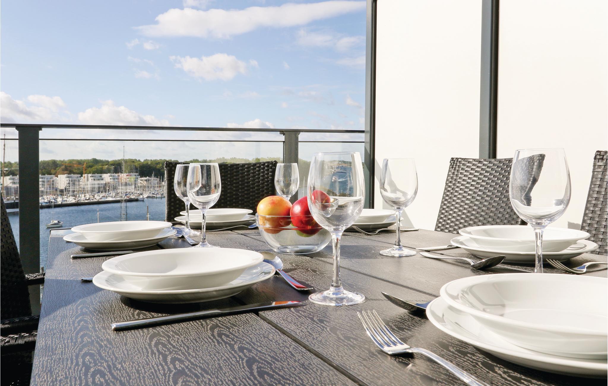 Auf dem Balkon, der nach Süden ausgerichtet ist, können Sie die frische Ostseeluft und das Rauschen der Wellen genießen oder gemeinsame Mahlzeiten mit der Familie einnehmen. Gartenmöbel sind vorhanden. Genießen Sie hier den wunderschönen Blick auf die Wellen der Ostsee und die Hafeneinfahrt. Gegen ein kleines Pfand können Sie sich an der Rezeption ein Fernglas ausleihen, mit dem Sie das Treiben der Umgebung und die Natur beobachten können.
