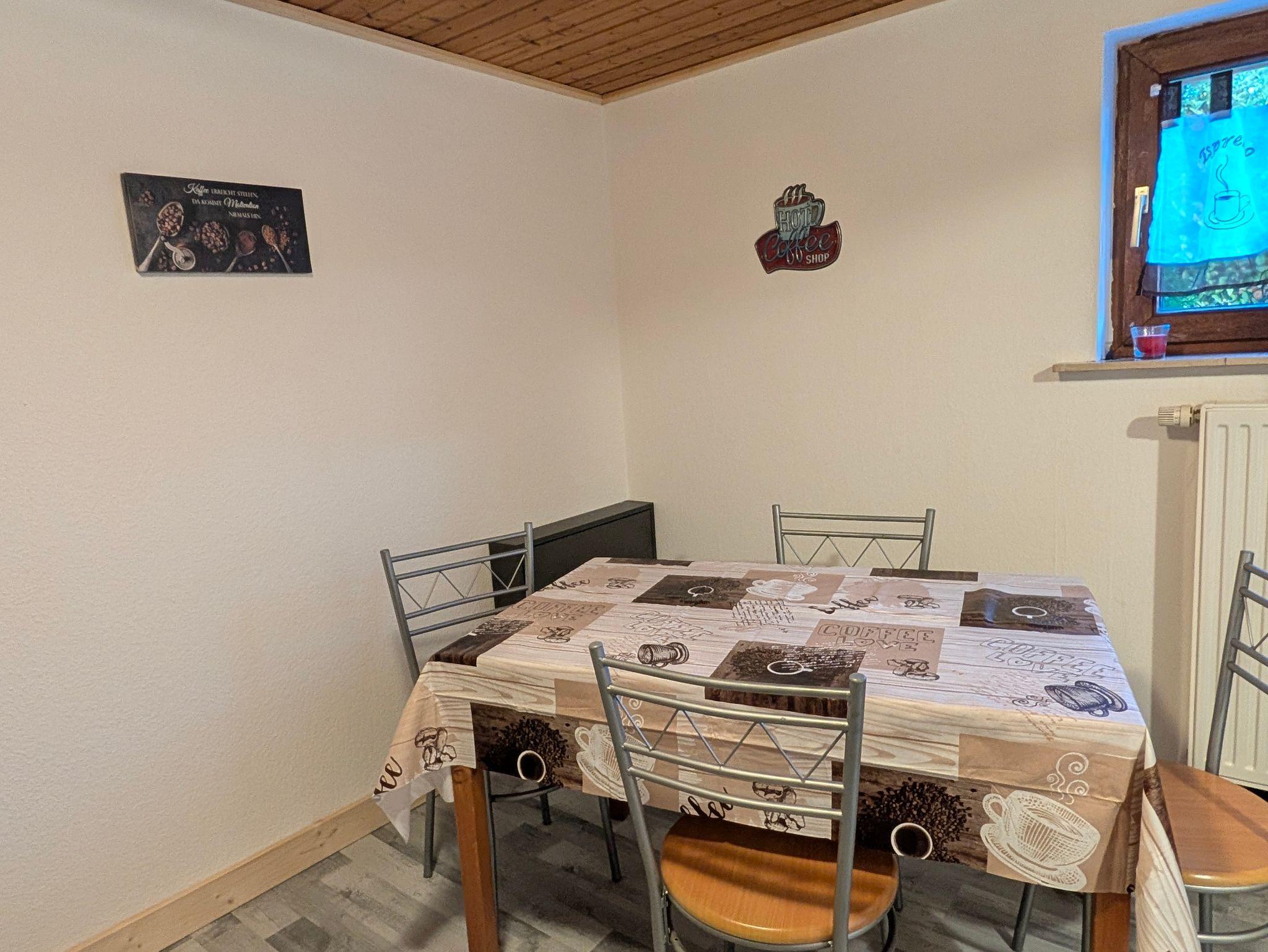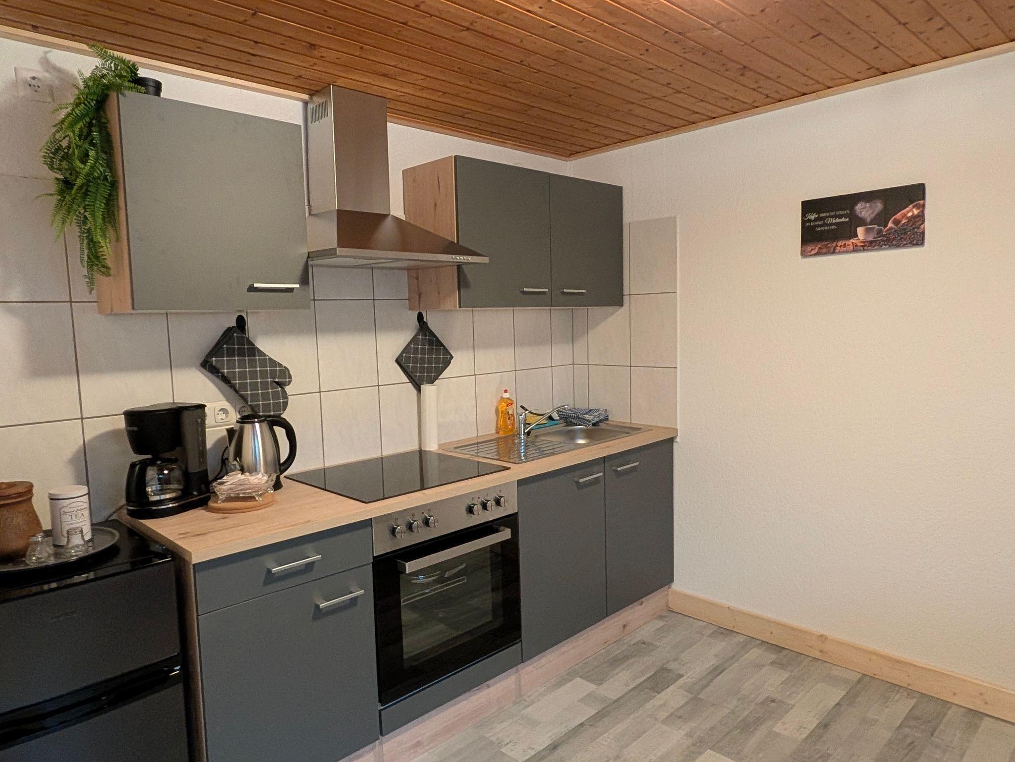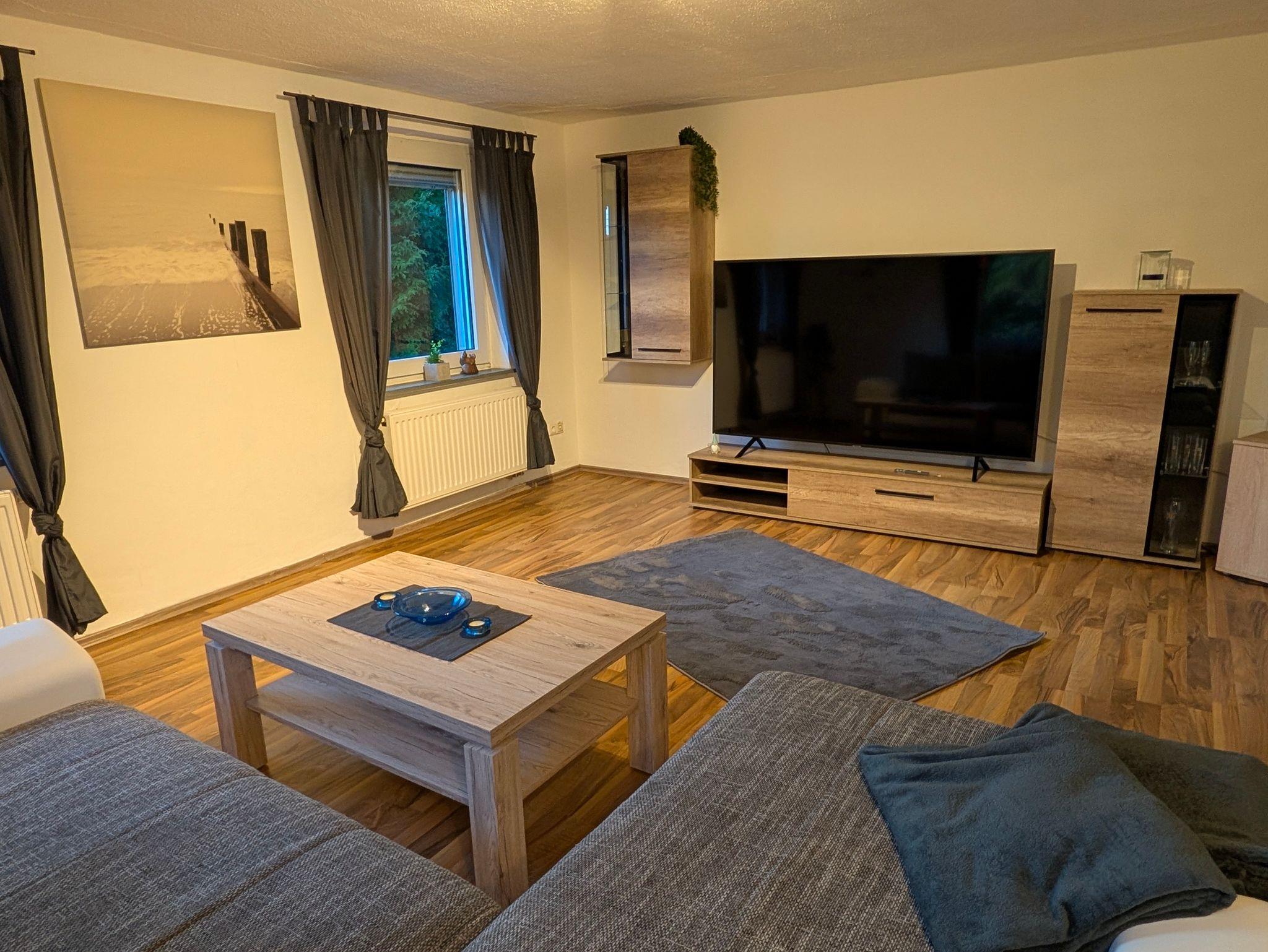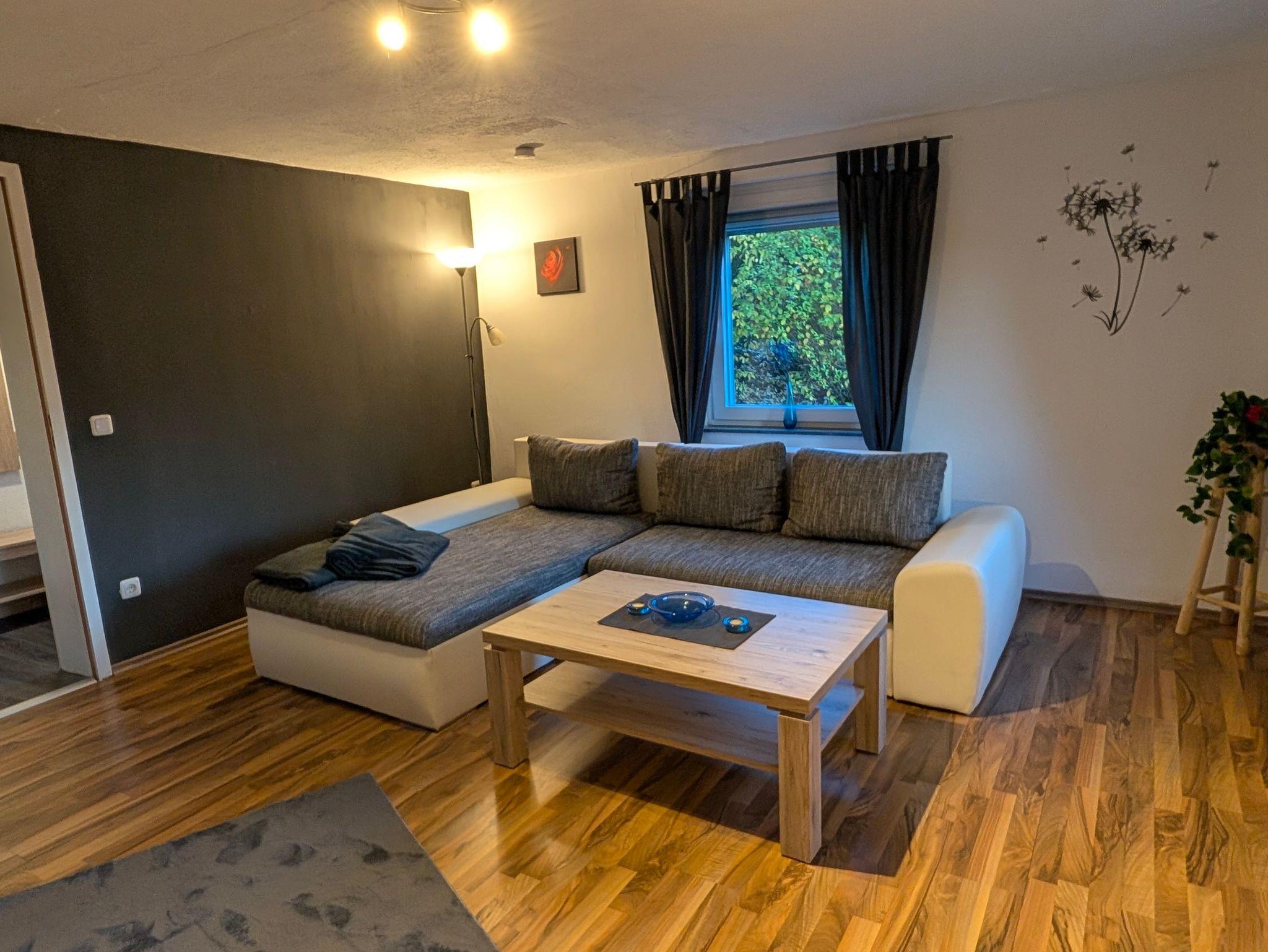 Die ca. 70 m² große Ferienwohnung liegt in herrlicher Waldrandlage von Hilchenbach mit direktem Zugang zu Fahrrad und Wanderwegen (z.B.Rothaarsteig). Die Küche verfügt über eine Sitzecke und einer gut ausgestatteten Küchenzeile. Ein Kühlschrank mit kleinem Gefrierfach ist vorhanden. Das helle geräumige Wohnzimmer ist mit einem bequemen Sofa und einem großen Smart-TV ausgestattet. Gute Matratzen im Doppelbett(1.80m x2.00m) sorgen im Schlafzimmer für ein entspanntes Schlaferlebnis. Im Badezimmer befindet sich eine Dusche, WC und Waschgelegenheit. Eine große und teilweise überdachte, im Sommer möblierte Terrasse lädt zu einem gemütlichen Grillabend ein.