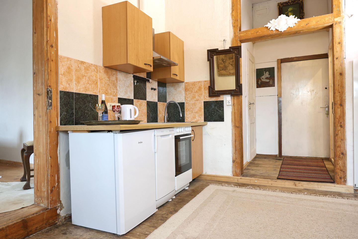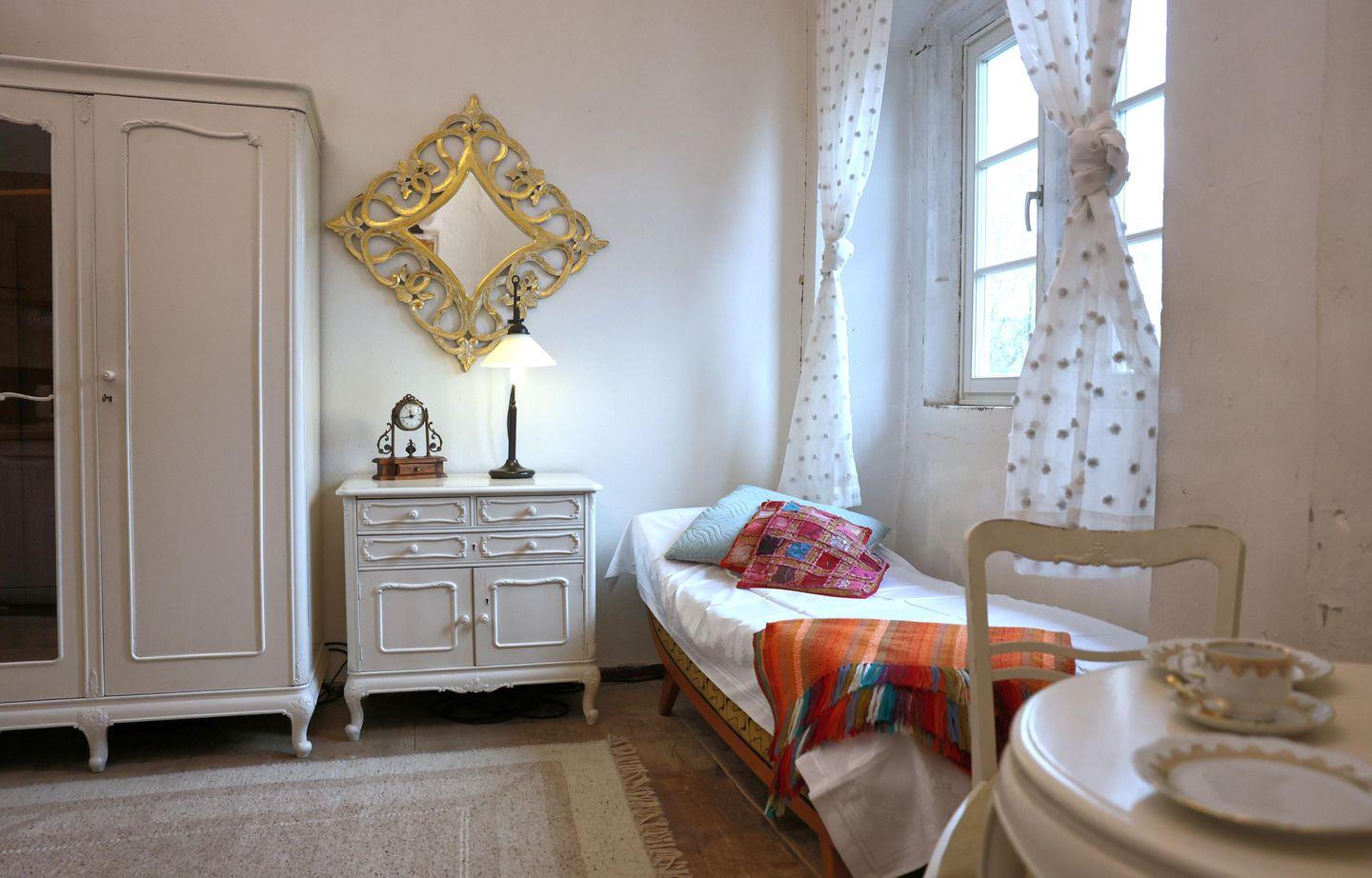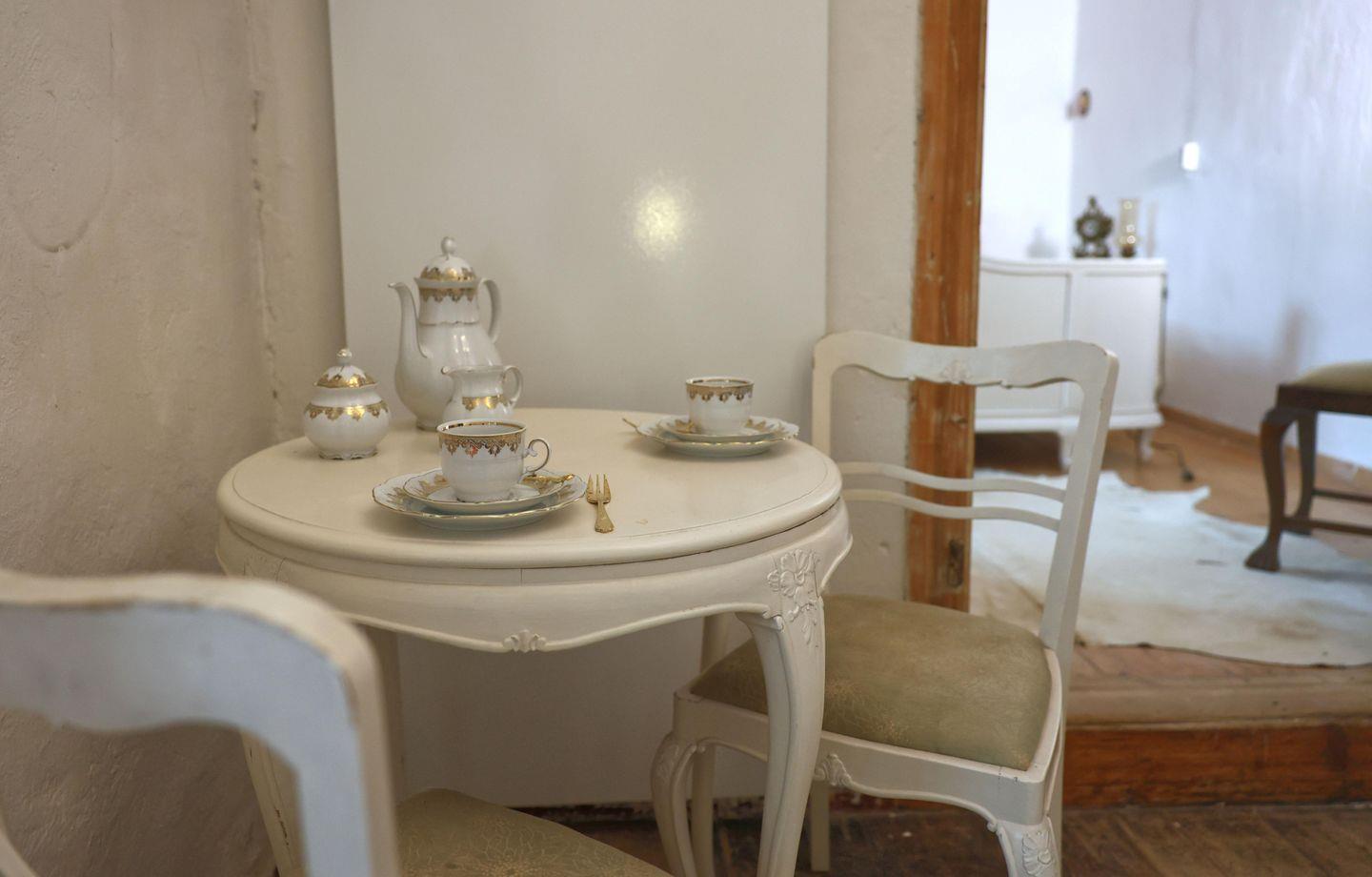 Dazu kommen ein Tisch, Stühle, ein Kleiderschrank und eine Kommode aus dem Nachlass von Zar Ferdinand.