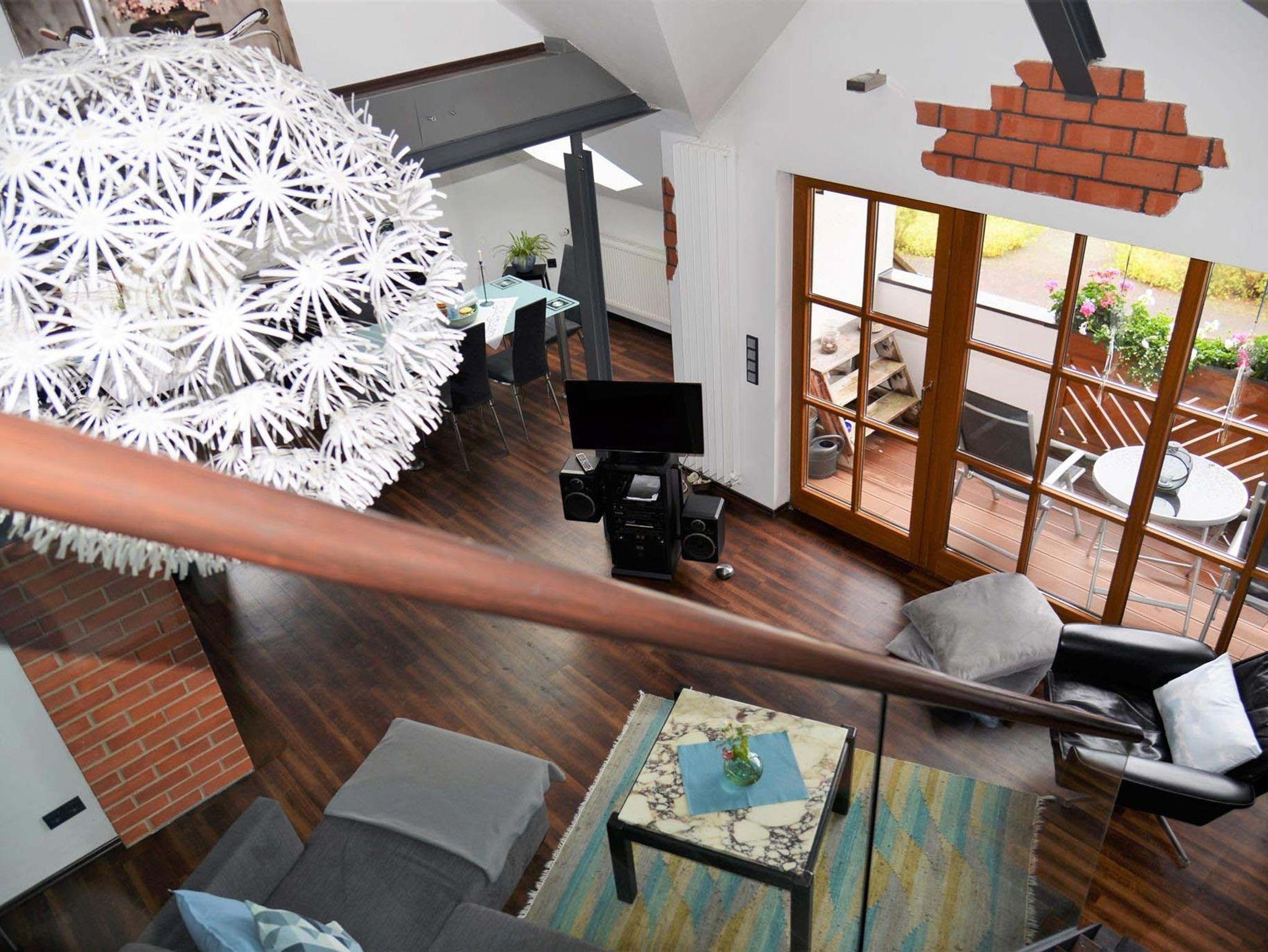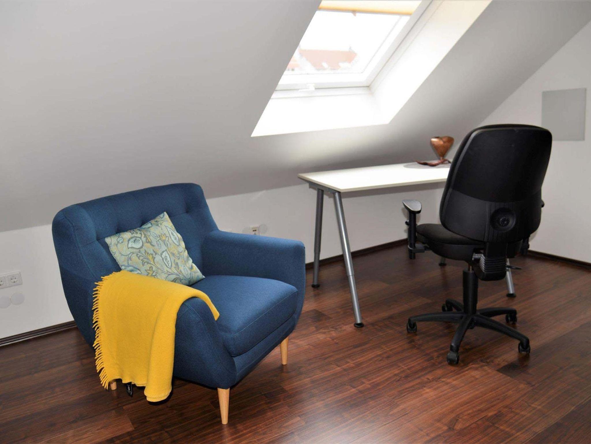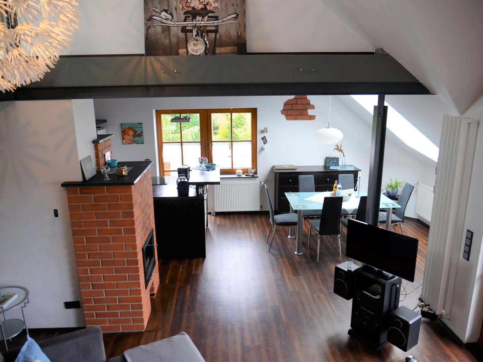 Familienfreundliche Ferienwohnung, die über zwei Schlafzimmer (DZ und ZBZ) verfügt- Die großzügig geschnittene, lichtdurchflutete Ferienwohnung besitzt eine Galerie mit Schreibtisch und Lesesessel und 2 Balkone mit super Aussicht. Von der Galerie und dem Lichtfirst im oberen Zimmer aus können Sie die Sterne bewundern im Sternenpark Rhön.