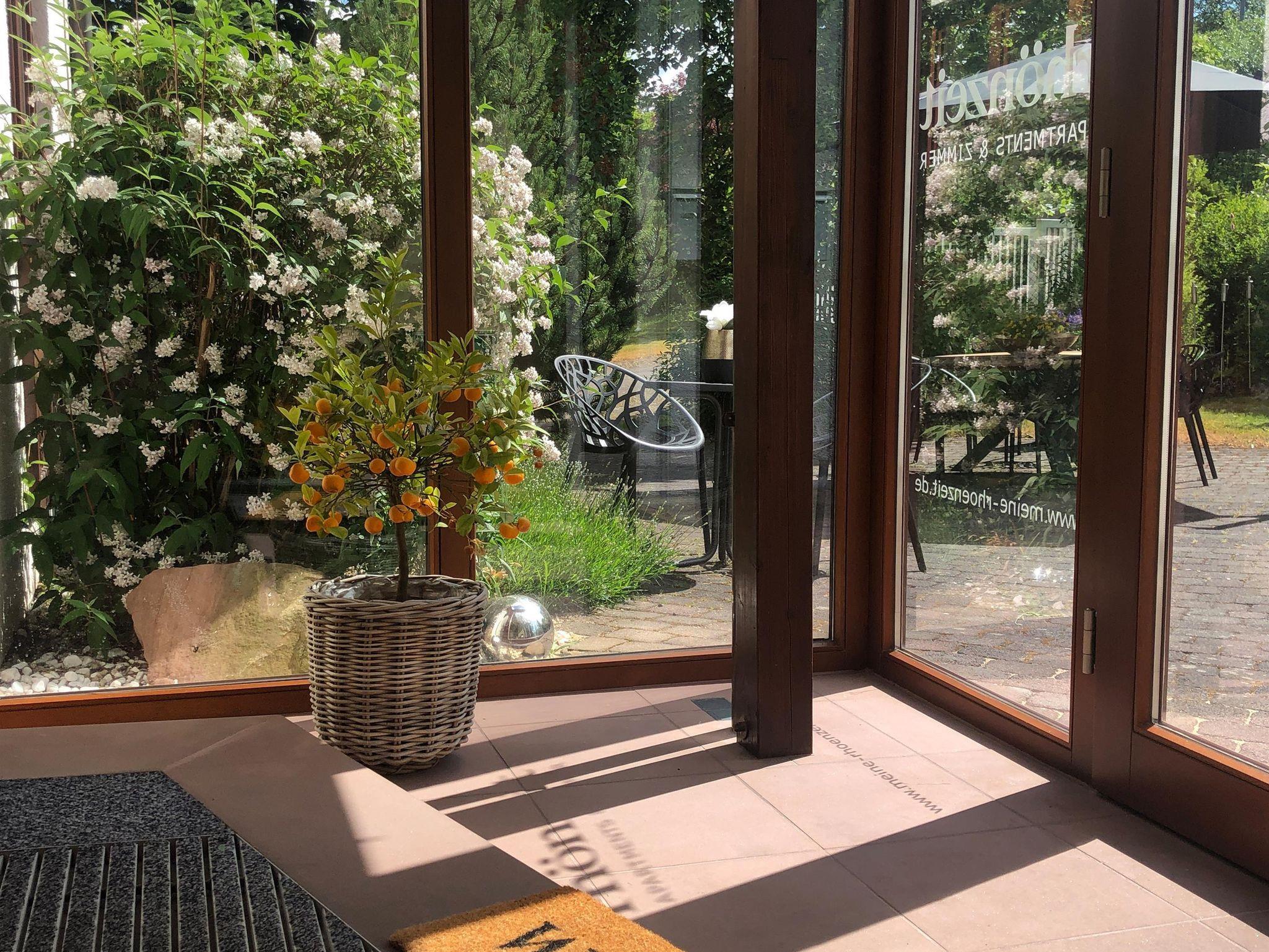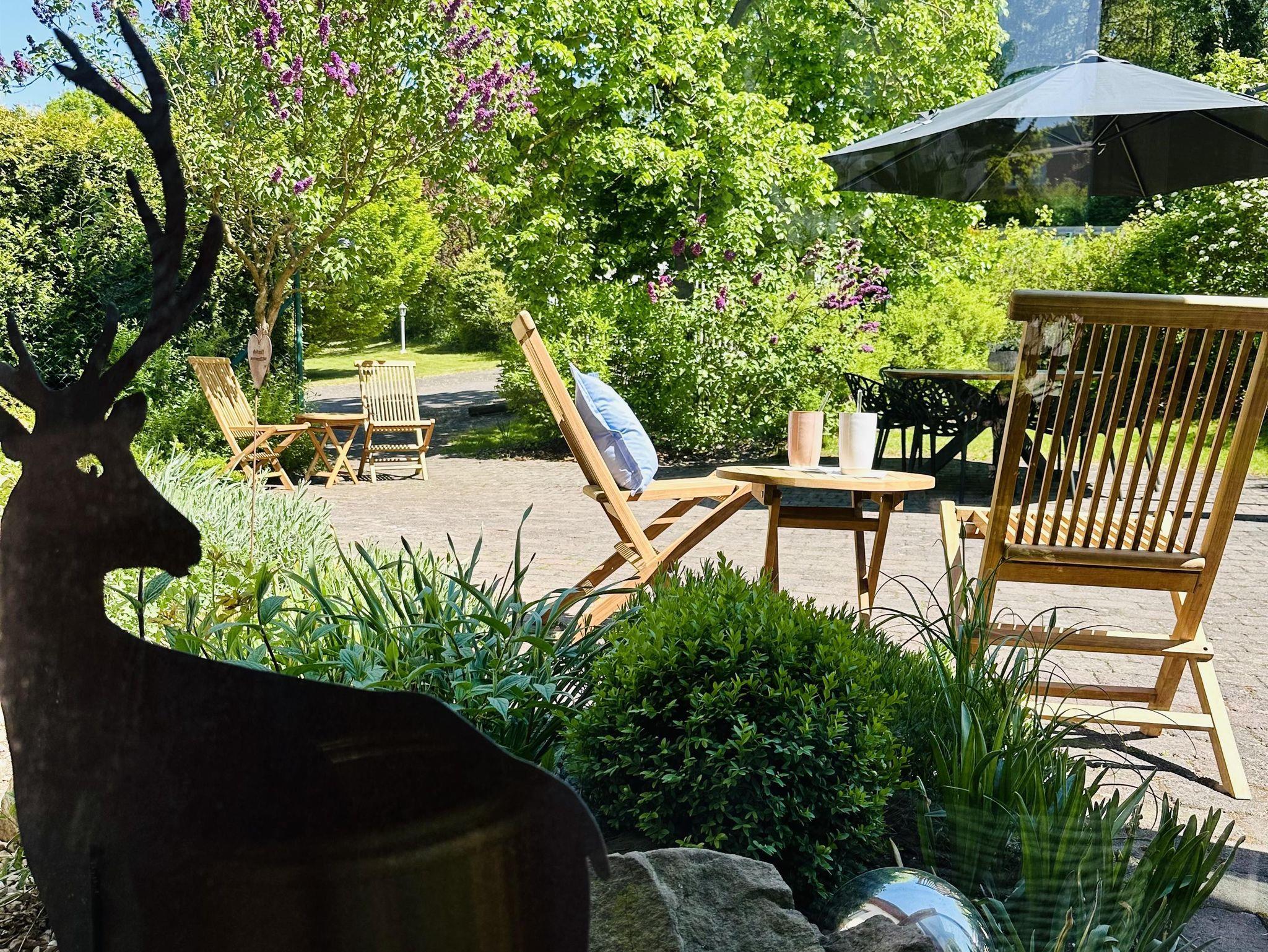 Gerne nutzen Sie im Sommer unseren großzügigen Garten mit Liegewiese und Gartenmöbeln. Über einen großzügigen Aufenthaltsraum mit 6-8 Plätzen erreichen Sie in unseren Garten.