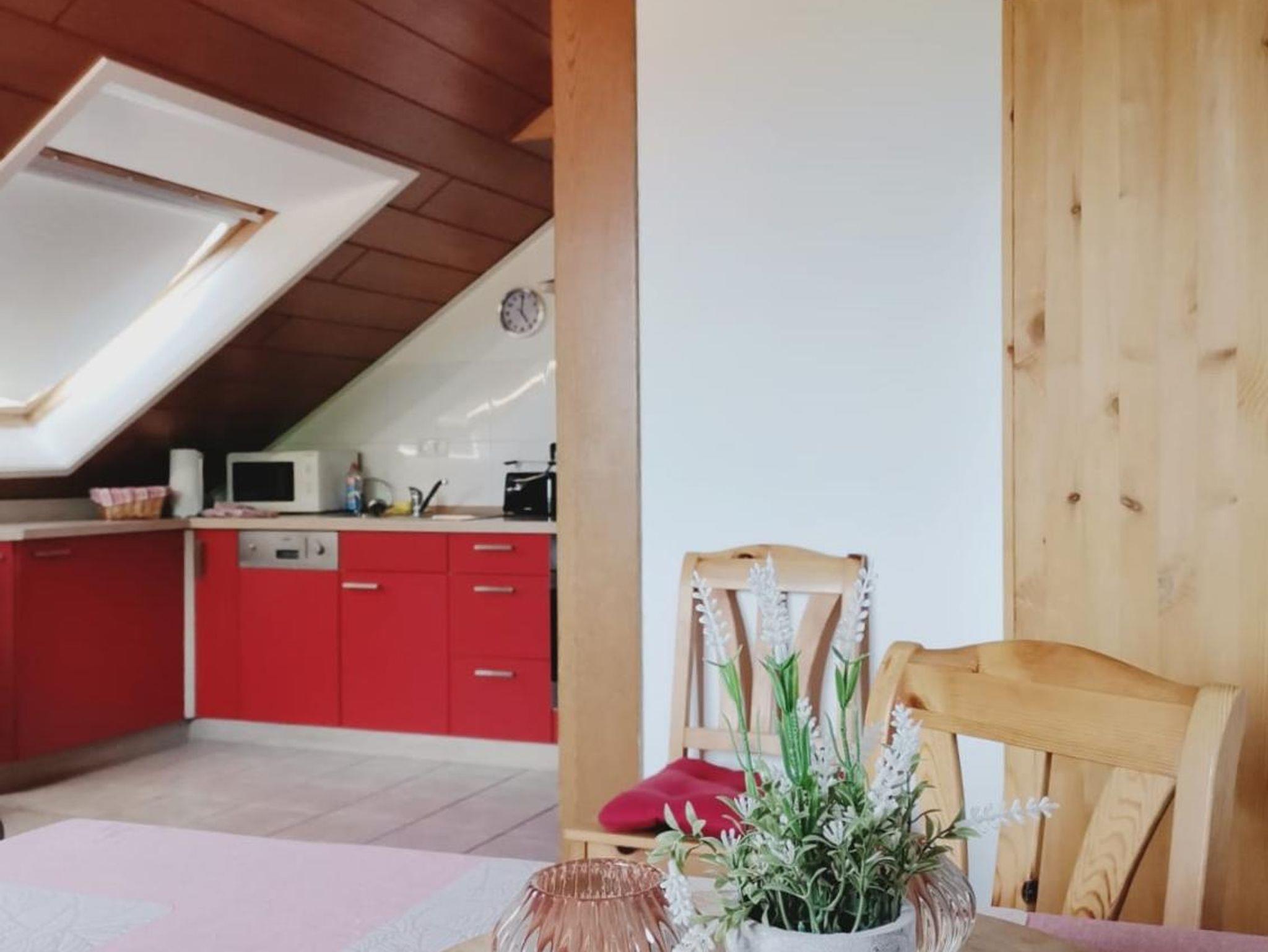 Ferienwohnung im 2.Obergeschoss für 6 Personen mit herrlicher Aussicht in alle 4 Himmelsrichtungen. Die Wohnung verfügt über Wohnzimmer mit Sitzecke, Eßecke, SAT-TV; Küche mit 4-Plattenherd, Backofen, Mikrowelle, Kühlschrank; 3 Schlafzimmer, davon 2 Zimmer mit franz. Bett (160 x 200), 1 Schlafzimmer mit 2 Einzelbetten, Bad mit Dusche und WC. Diese Wohnung hat KEINEN Balkon