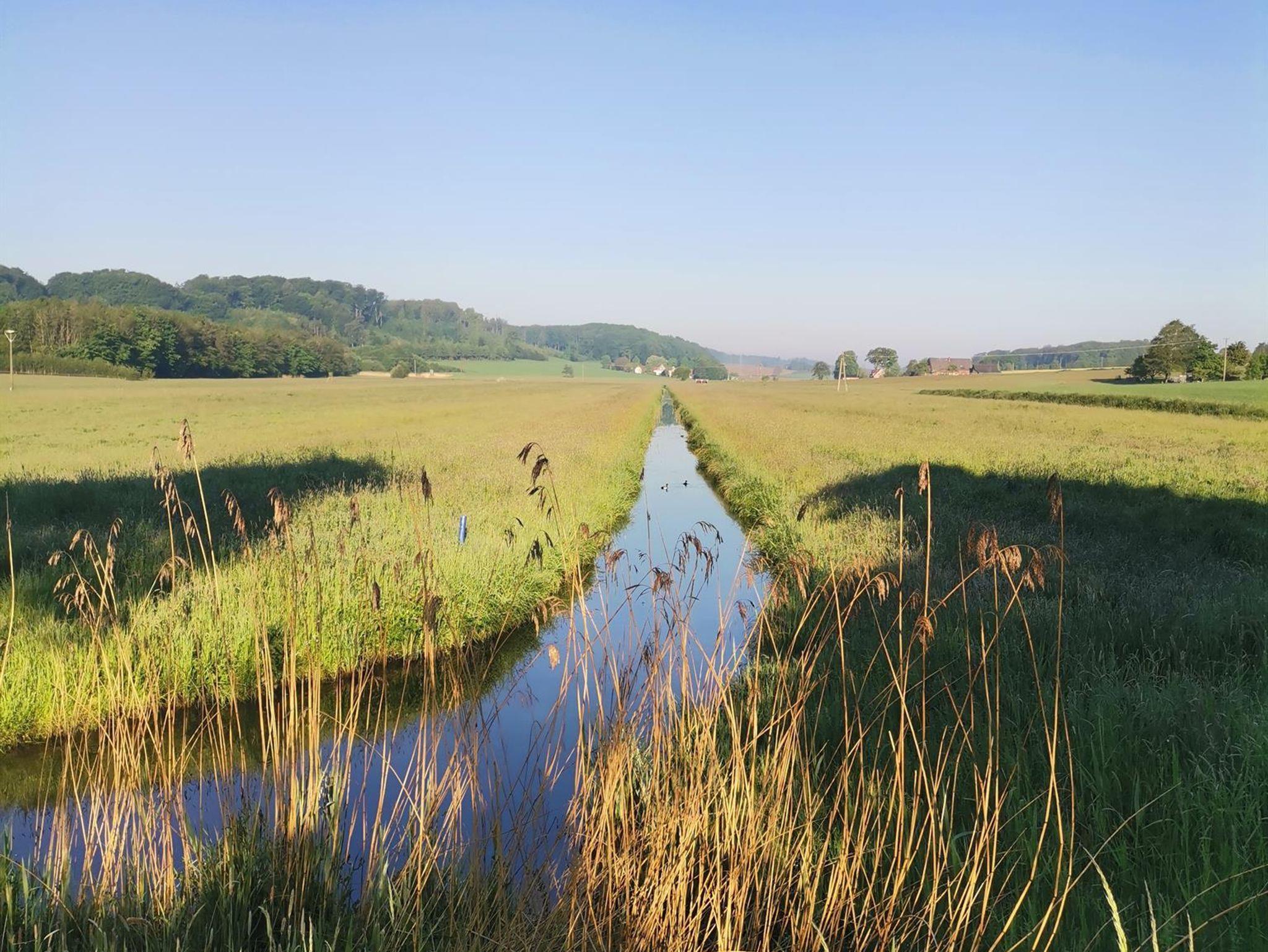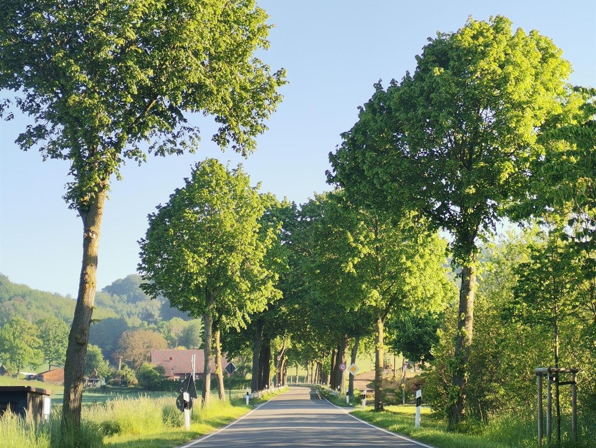 Die Nichtraucher-Ferienwohnungen haben eine Nord-West-Ausrichtung und sind mit einem wunderschönen Ausblick in die hügelige Natur des südlichen Teutoburger Walds zu genießen. Das Tal des Königsbaches ist in der untergehenden Abendsonne vom Balkon (nur in FeWo 3) aus zu erleben. Der kleine Fluss treibt noch heute beim direkten Nachbarn eine kleine Wassermühle an! Außerdem trennt der Königsbach unmittelbar die Ortschaften „Klein Dratum“ mit alten Sandsteingehöften und „Alt Uphöfen“ mit seinen althandwerklichen Fachwerkhöfen.