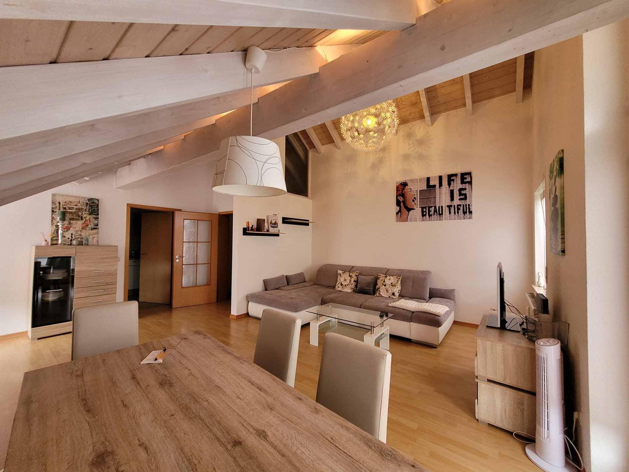 Die Ferienwohnung Hegau in Hilzingen bietet eine helle und gemütliche Unterkunft mit einem großen Balkon und kostenfreiem WLAN. Durch die hohe Dachschräge ist die Wohnung lichtdurchflutet und lädt ein zum verweilen.