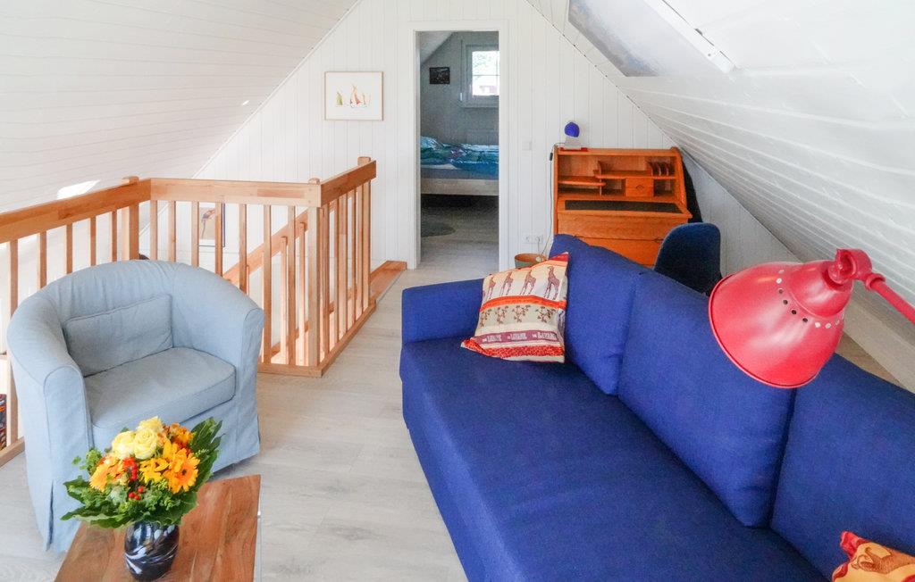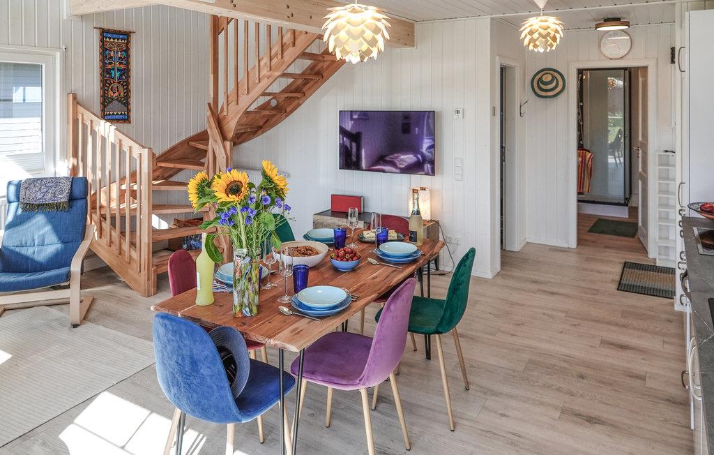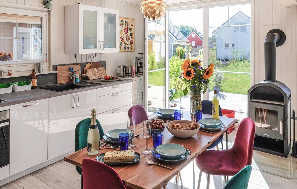 Dieses komfortable Ferienhaus begrüßt Sie mit einer hellen und freundlichen Atmosphäre. Die liebevolle Einrichtung strahlt Lebensfreude aus – lassen Sie sich von ihr anstecken, während Sie leckere Gerichte zaubern und harmonische Mahlzeiten in vertrauter Runde genießen. Entfachen Sie den Kaminofen, machen Sie es sich für einen fröhlichen Spieleabend im einladenden Wohnzimmer gemütlich oder vertiefen Sie sich in der behaglichen Galerie in ein gutes Buch.