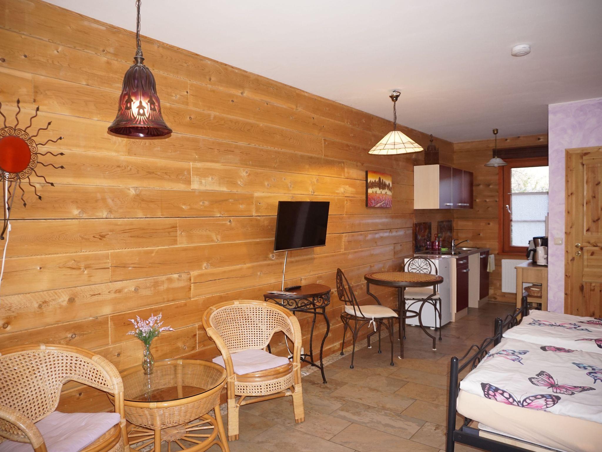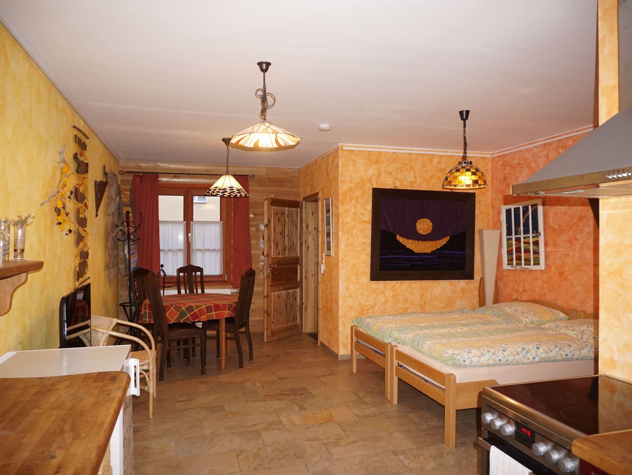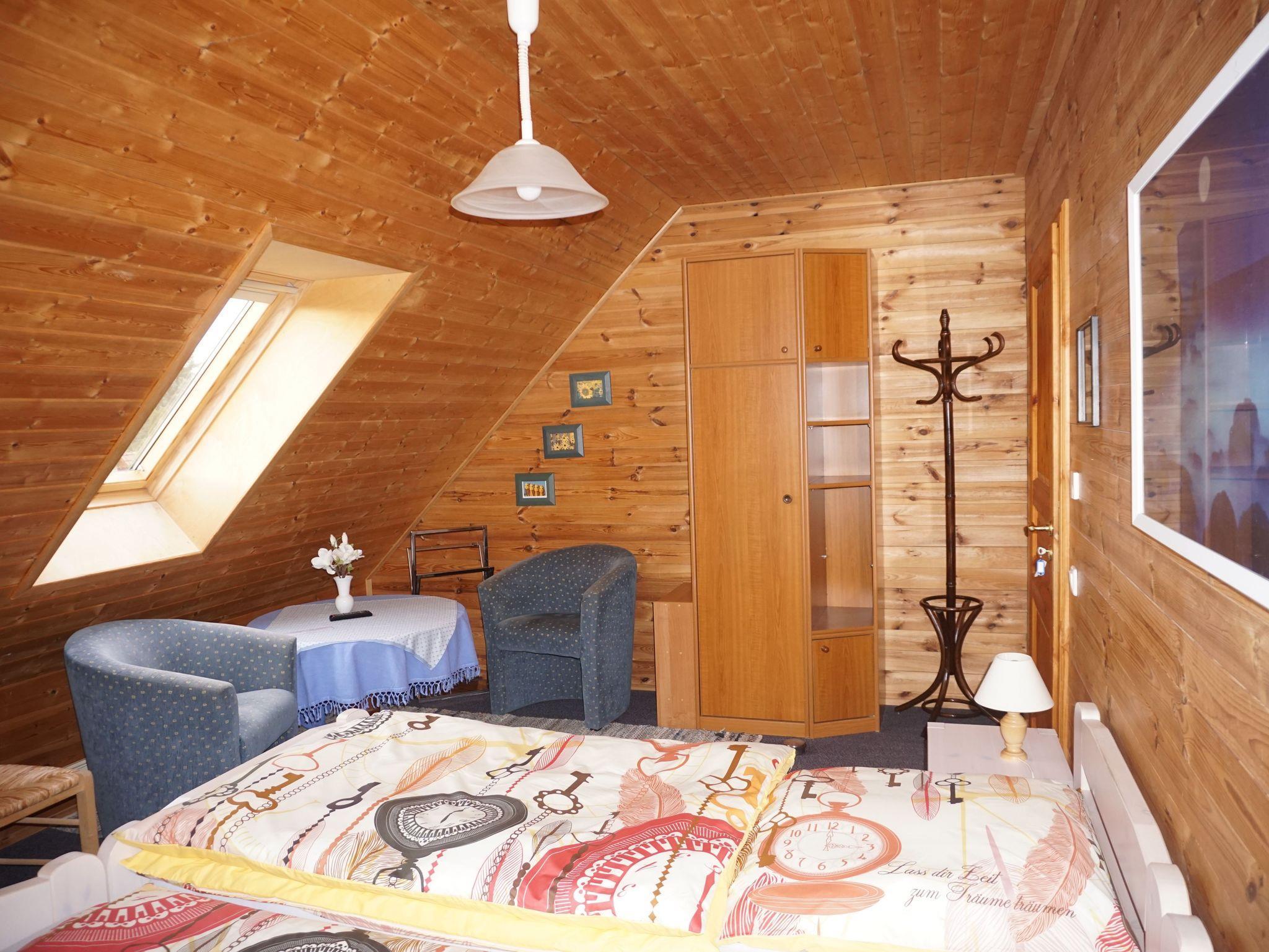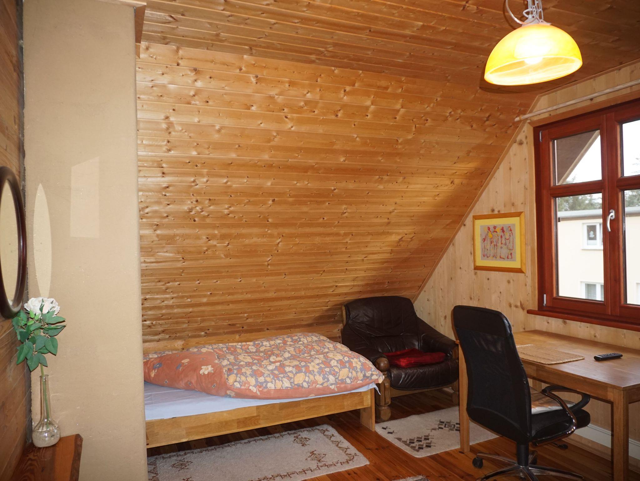 Das Zweibettzimmer befindet sich im Kleinen Steinhaus (Baujahr 1995; Komplettsanierung 2022) und ist ganz individuell mit Holzmöbeln ausgestattet. Zwei Fenster zum Hof geben Ausblick auf einen ehemaligen Bauernhof. Es ist ausgestattet mit TV, Bettwäsche und Handtüchern. Das Bad mit Dusche und WC befindet sich in einem separaten Raum und wird gegebenenfalls mit einem Gast in einem Einzelzimmer gemeinsam genutzt. Die Küche wird von allen Gästen genutzt. Ein Reisekinderbett (10,- Euro) und ein Kinderhochstuhl (3,- Euro) wird Ihnen auf Anfrage zur Verfügung gestellt.