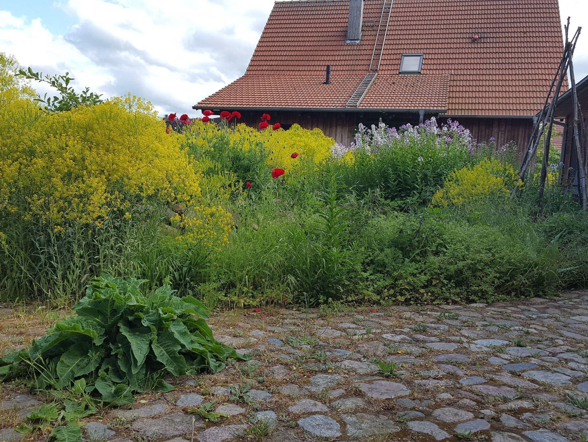 Gemütliches Zweibettzimmer im Kleinen Steinhaus nahe Greifswald bietet individuellen Charme und Garten mit Pavillon.