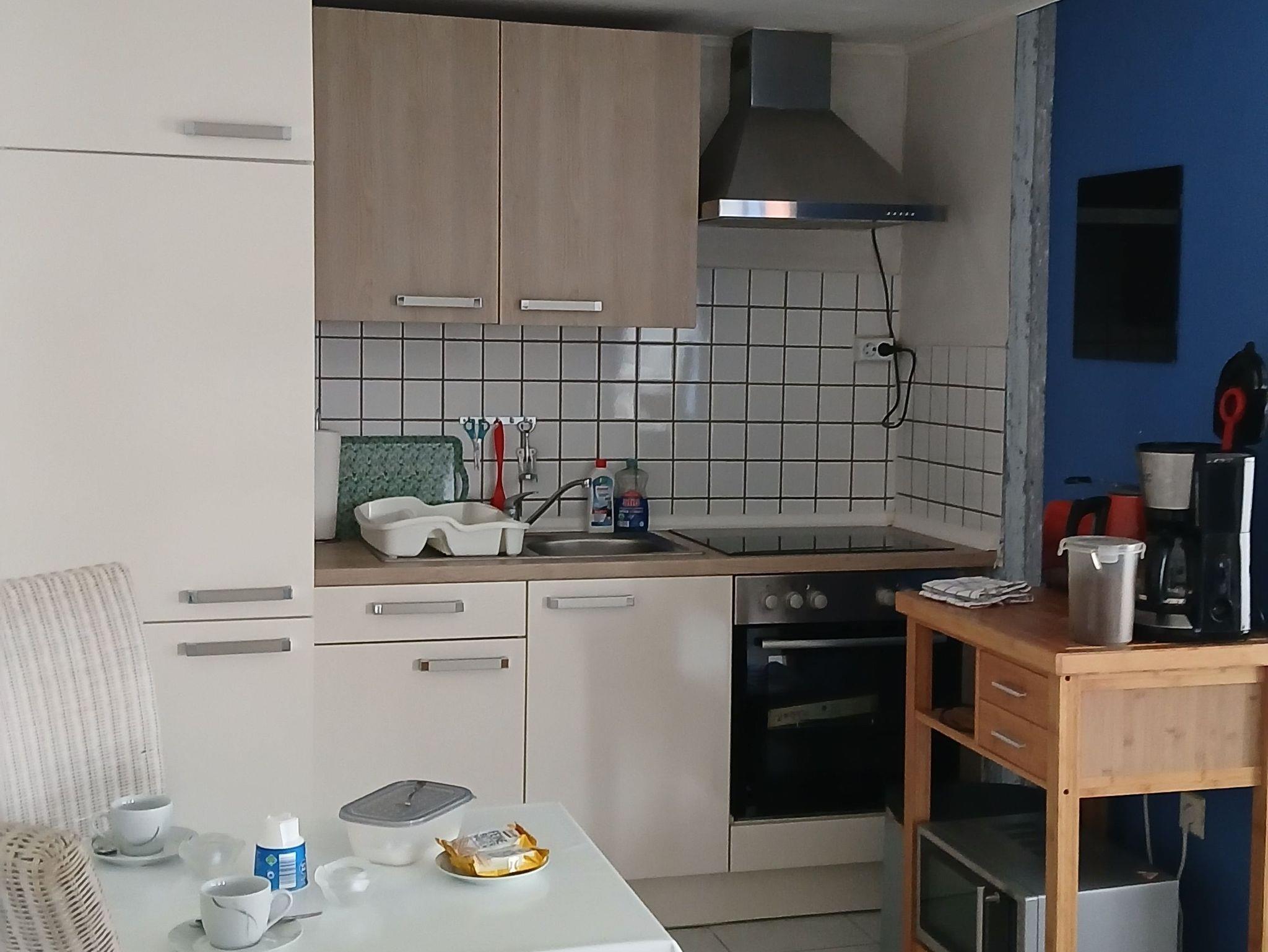 Gemütliche kleine Ferienwohnung für 2 Personen. Offener Wohn-/ Schlafbereich mit Küchenzeile und Microwelle. Sat-TV und Radio sind ebenfalls vorhanden. Den Gästen steht ein Bad mit Dusche und WC zur Verfügung. Auf Wunsch mit Kinderhochstuhl und Babyreisebett. Die Wohnung ist ca. 30 m² groß und befindet sich im Erdgeschoss.