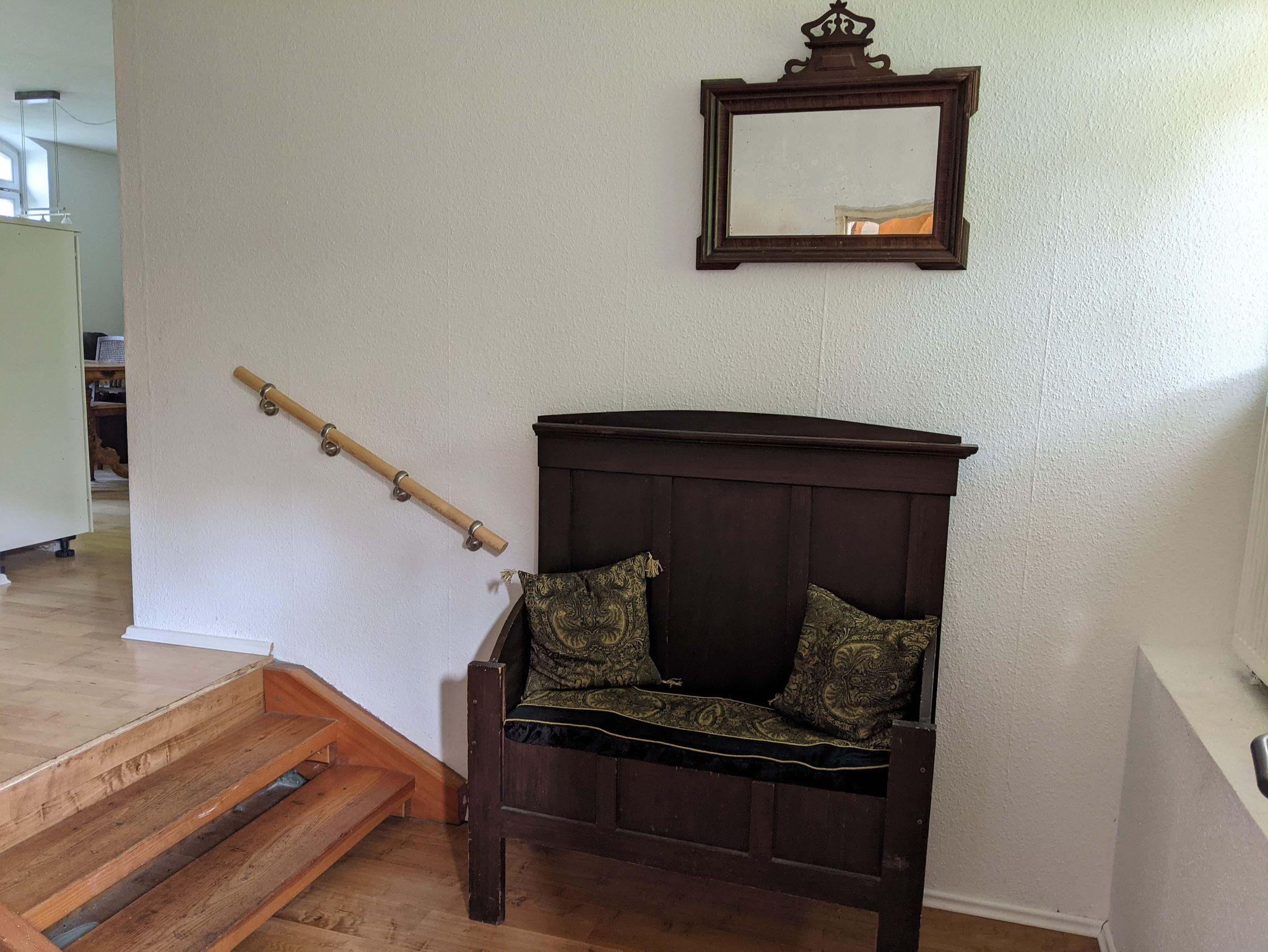 Fertienwohnung im Erdgeschoss mit Balkon am kleinen Bach. Mit großer Wohn-Essküche, 2 Schlafzimern, Bad und Flur. Ein Kaminofen läd zum gemüdlichen Verweilen mit einen guten Getränk ein.