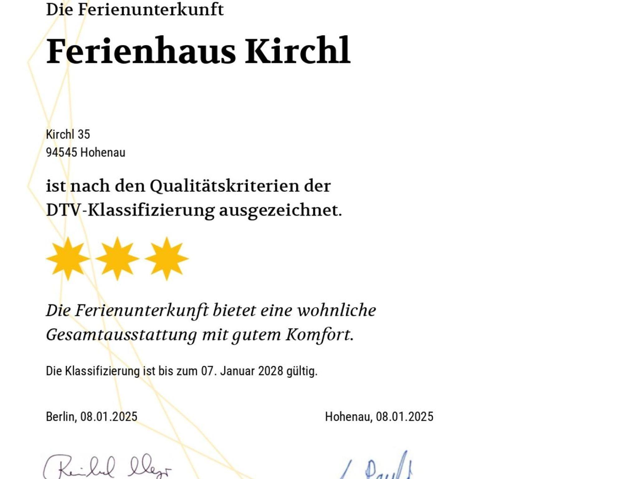 Das komplett umzäunte Ferienhaus Kirchl liegt in der Gemeinde Hohenau im Bayerischen Wald direkt am ältesten Nationalpark Deutschlands. Naturfreunde, Wander- Sport- und Aktivbegeisterte finden hier ein attraktives Angebot an Wander- und Radwegen, Skipisten und Langlaufloipen. Das eingezäunte Ferienhaus eignet sich besonders für Familien mit Kindern und natürlich auch Hunden. Die Unterkunft wurde vom Deutschen Tourismusverband mit einer 3 Sterne - und 4 Pfoten - Klassifizierung ausgezeichnet.