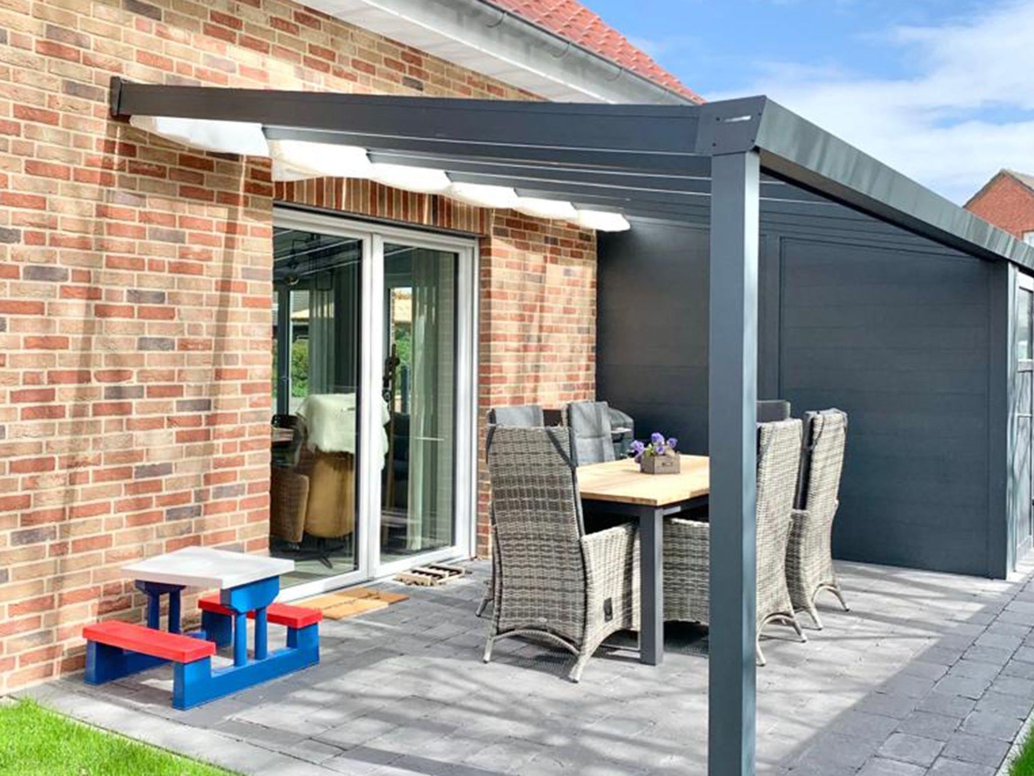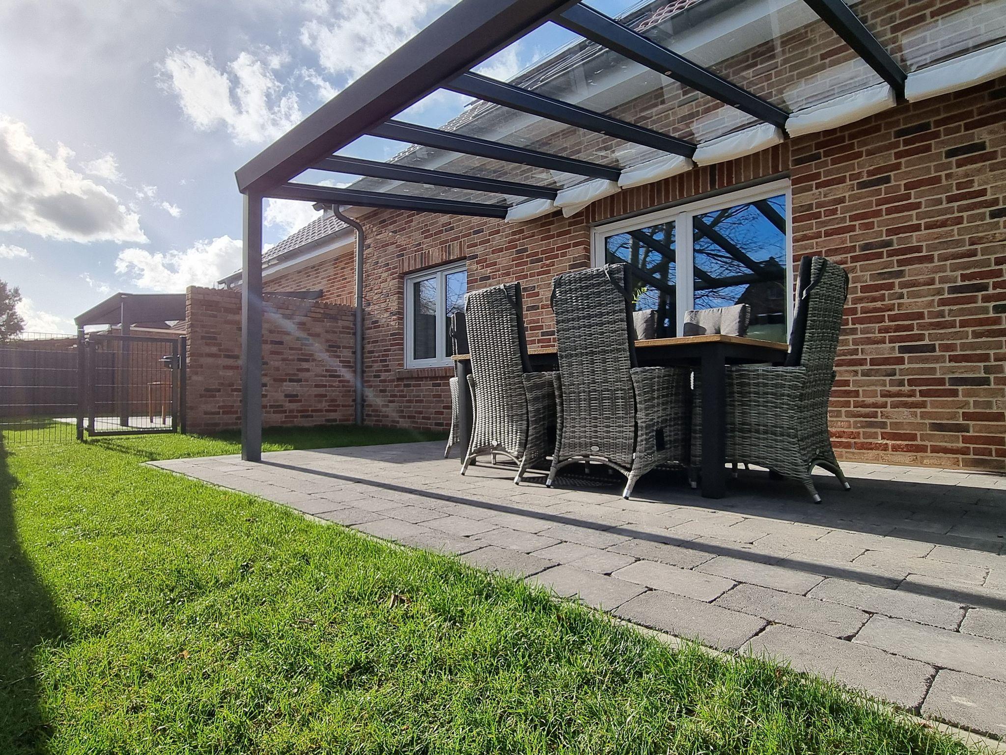 Modernes Ferienhaus Tio mit großem Garten nahe Nordsee und Badesee, ideal für Familien und Hunde.