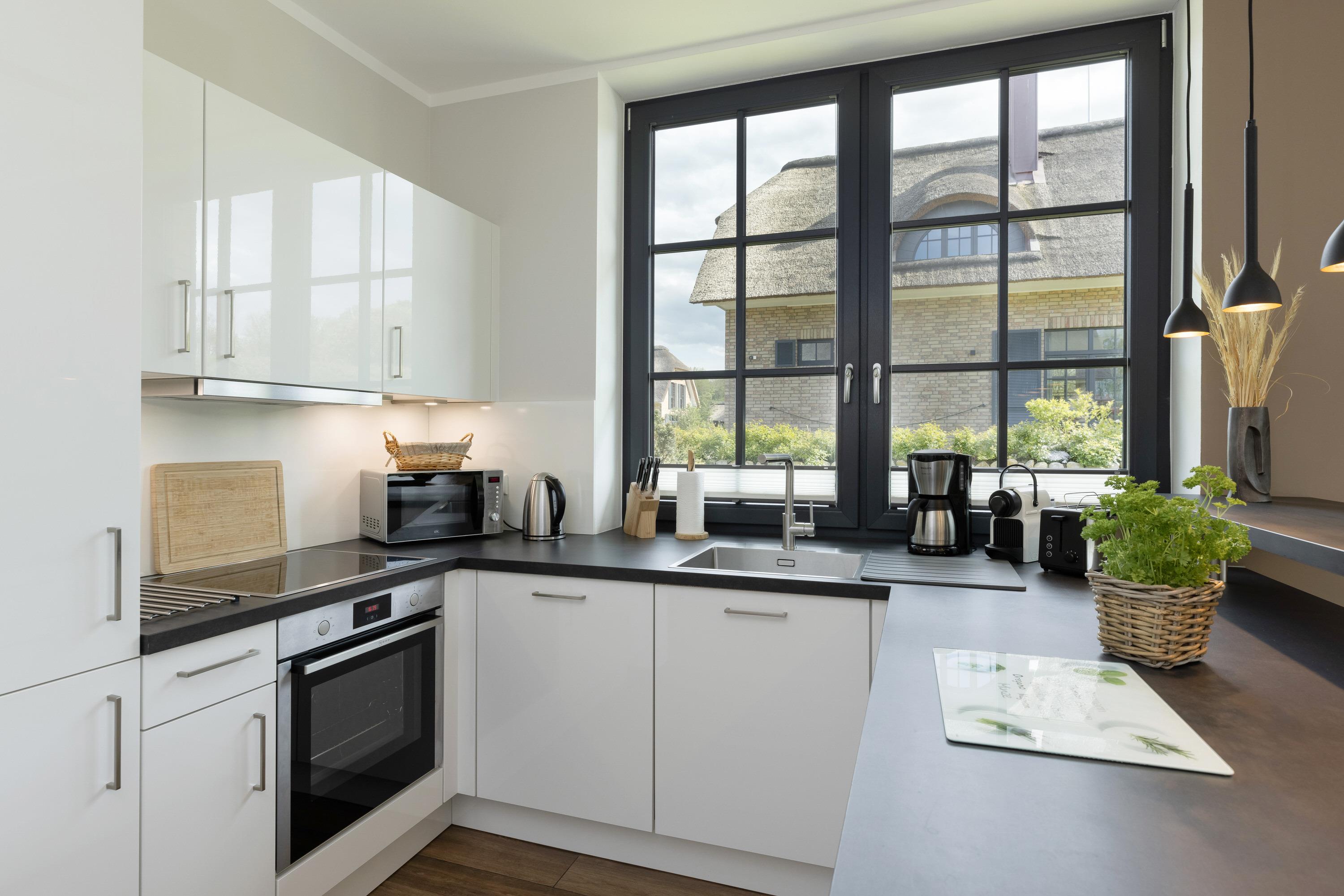 Die moderne, großzügige Küche ist offen angelegt und mit allem ausgestattet, was man benötigt, um nicht nur den schnellen Snack für zwischendurch, sondern auch das Mehrgangmenü am Abend zubereiten zu können. Großzügige Fensterfronten, ein komfortabler Esstisch und eine gemütliche Sitzgruppe vor dem Kamin prägen den lichtdurchfluteten Wohnbereich. Und was gibt es Schöneres an kühlen Abenden, als das Flackern von brennenden Holzscheiten im Kamin! Wer die raue Schönheit der Küste in Herbst und Winter liebt, weiß die Wärme und Behaglichkeit eines Kaminfeuers zu schätzen. Denken Sie daher bei Ihrer Buchung am besten gleich daran, Kaminholz für den ersten Abend zu bestellen.