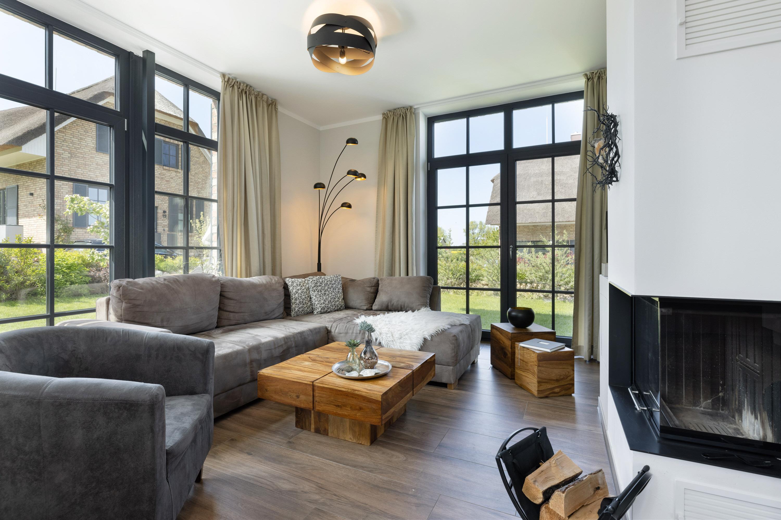 Die praktische, großzügige Küche ist offen angelegt und mit allem ausgestattet, was man benötigt, um nicht nur den schnellen Snack für zwischendurch, sondern auch das Mehrgangmenü am Abend zubereiten zu können. Großzügige Fensterfronten, ein komfortabler Esstisch und eine gemütliche Sitzgruppe vor dem Kamin prägen den lichtdurchfluteten Wohnbereich. Und was gibt es Schöneres an kühlen Abenden, als das Flackern von brennenden Holzscheiten im Kamin?! Wer die raue Schönheit der Küste in Herbst und Winter liebt, weiß die Wärme und Behaglichkeit eines Kaminfeuers zu schätzen. Denken Sie daher bei Ihrer Buchung am besten gleich schon daran, Kaminholz für den ersten Abend zu bestellen.