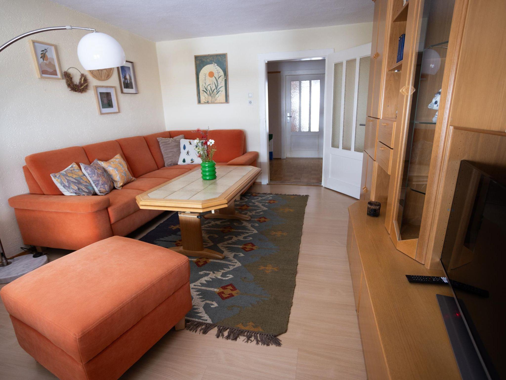 Idyllisch auf der Sonnenseite im Ortsteil Thening am Fuße des Hohenbogen gelegen, bietet die Ferienwohnung mit 110qm den idealen Rückzugsort für einen erholsamen Aufenthalt. Die Unterkunft ist komfortabel ausgestattet und verfügt über ein gemütliches Wohnzimmer sowie zwei Schlafzimmer – eines mit einem Doppelbett und ein weiteres mit einem Doppelbett und zwei Einzelbetten. Die separate Küche mit Essbereich lädt zu gemeinsamen Mahlzeiten ein. Das großzügige Badezimmer ist mit Dusche, Badewanne und zwei Waschbecken ausgestattet und sorgt für zusätzlichen Komfort während Ihres Aufenthalts.