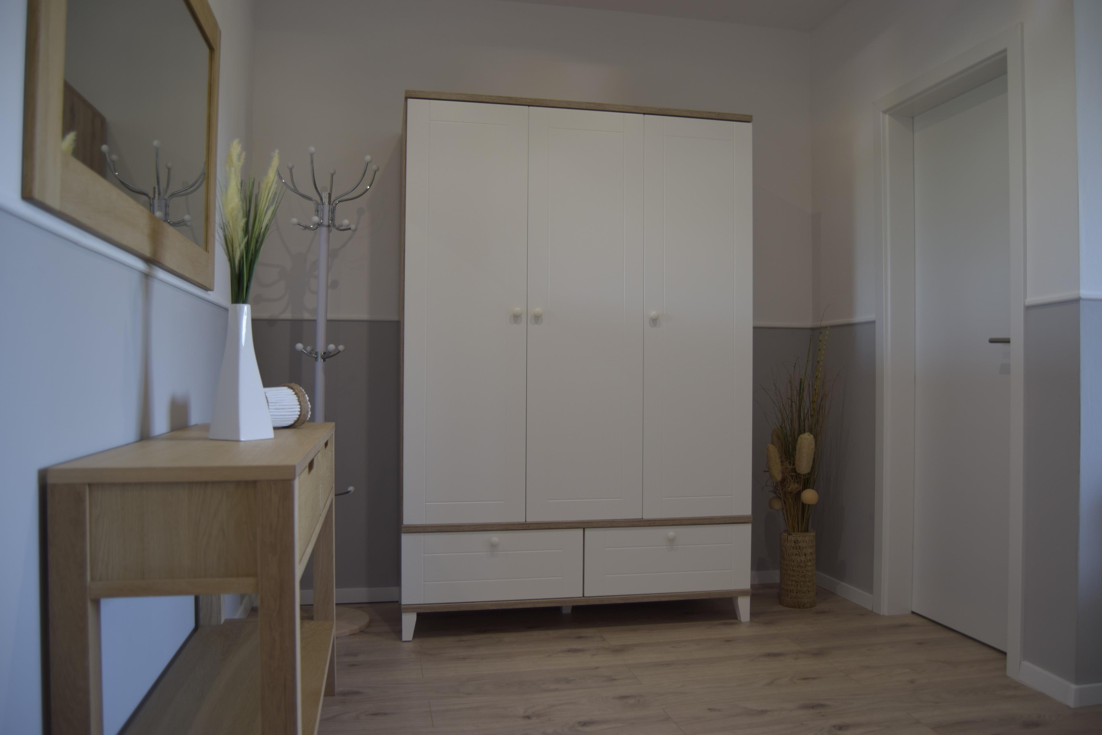 Die Essecke lädt zum gemütlichen Schlemmen ein. Ein Doppelbett steht in einem separaten Schlafraum. Ein geräumiger Kleiderschrank ist im Ankleidebereich zu finden. Die kleine, aber feine Küchenzeile lässt zur Selbstversorgung kaum einen Wunsch offen. Kühlschrank mit einem Eisfach, Backofen, Mikrowelle, Toaster, Wasserkocher und Kaffeemaschine sind vorhanden. Für den entspannten Kaffee am Morgen steht auch eine Nespressomaschine zur Verfügung. Das moderne Badezimmer, mit großzügiger Regendusche, bietet nach heißen Sommertagen die passende Erfrischung. In ca. 6 Gehminuten erreicht man den wunderschönen Strand von Kalifornien. Hier ist für jeden etwas dabei, kilometerlange Fahrradtouren, nicht enden wollende Strandspaziergänge, Wassersport oder einfach nur einen entspannten Strandtag genießen, sind hier kein Problem. Für Groß und Klein bietet der Holmer Marktplatz in den Sommermonaten diverse Angebote. Zum Verwöhnen finden Sie ein Kosmetikstudio, Boutique und einen Friseur auf dem Platz. Ein Spielplatz, Fahrradverleih, sowie einige Minigolf- Anlagen sind auch ganz in der Nähe. Der nahegelegene Ort Schönberg, mit diversen Einkaufsmöglichkeiten, ist in wenigen Autominuten zu erreichen. Vom Appartement aus sind es nur wenige Schritte zum Bus, der in unsere attraktive Landehauptstadt Kiel fährt. Parkmöglichkeiten sind in ausreichender Zahl vor dem Haus für Sie vorhanden. Ein Wäscheständer befindet sich auf dem Balkon.