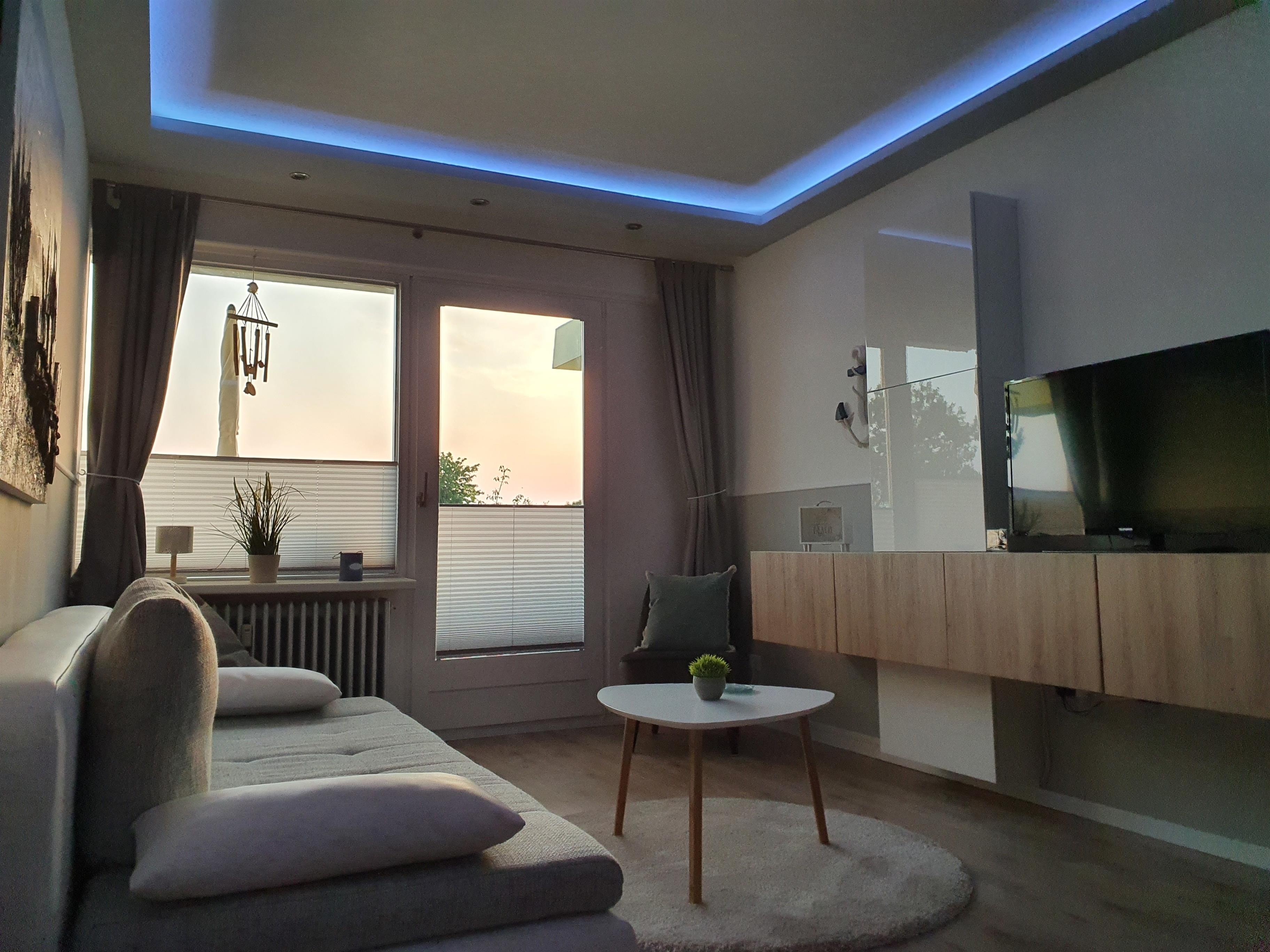 Der Wohnraum ist mit einem großen Schlafsofa, welches man für einen kuscheligen Fernsehabend oder auch als Schlafplatz umbauen kann, ausgestattet. Außerdem kann man am Abend, sowie bei schlechtem Wetter bei einer gemütlichen Ambientebeleuchtung