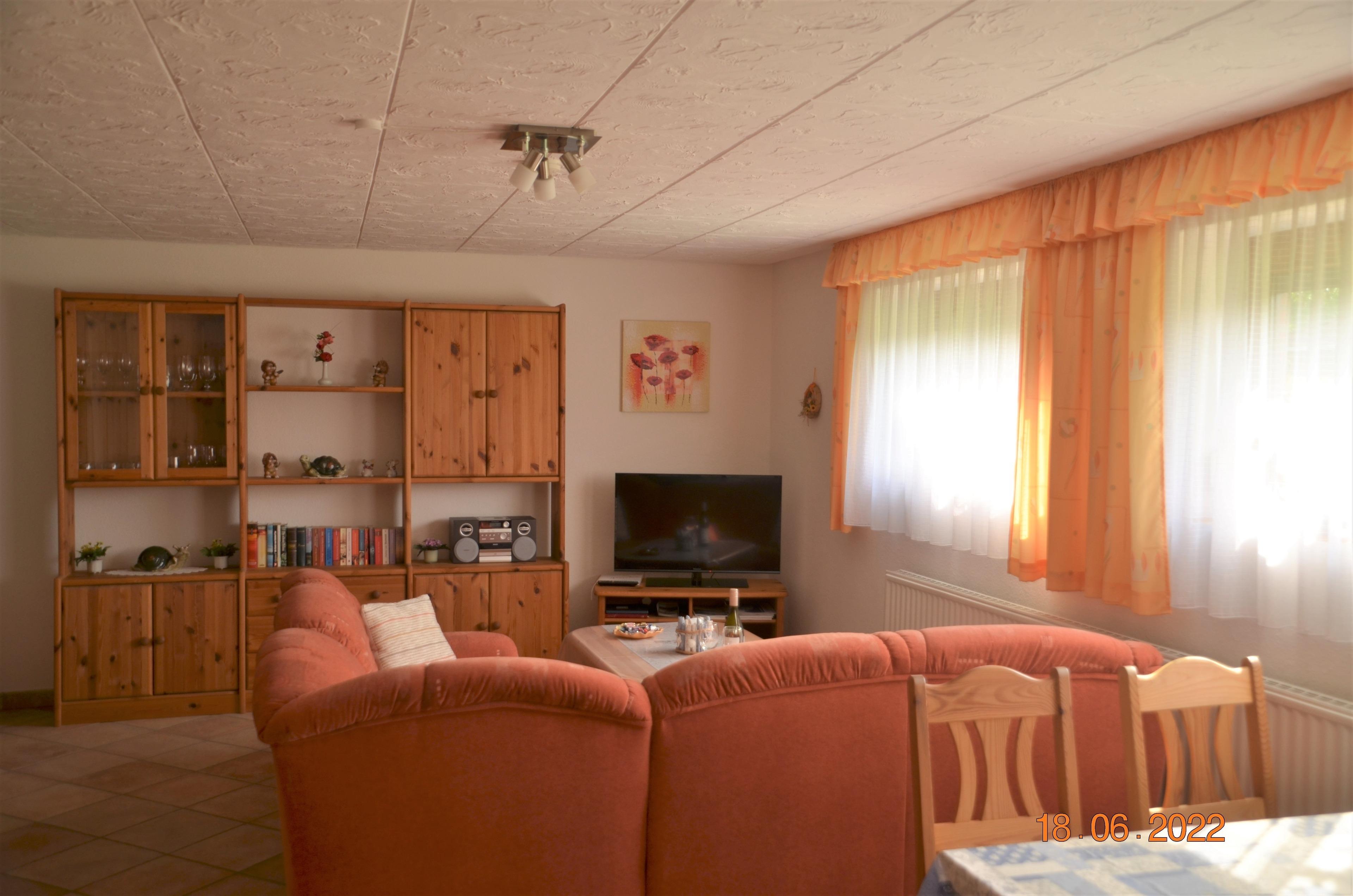 Unsere Ferienwohnung mit separatem Eingang bietet Schlafplätze für max. 4 Personen. Die Küchenzeile ist komplett ausgestattet. Ein Farb- TV mit SAT- Anschluss und eine Kompaktanlage sorgen für Unterhaltung im Wohnzimmer. Zusätzlich steht Ihnen ein von der FeWo zugänglicher Abstellraum zur Verfügung. Hier sind auch Waschmaschine und Trockner untergebracht. Die Nutzung dieser Geräte ist ebenso im Mietpreis enthalten, wie Bettwäsche und Handtücher sowie bei Bedarf ein Kinderbett und -Hochstuhl.