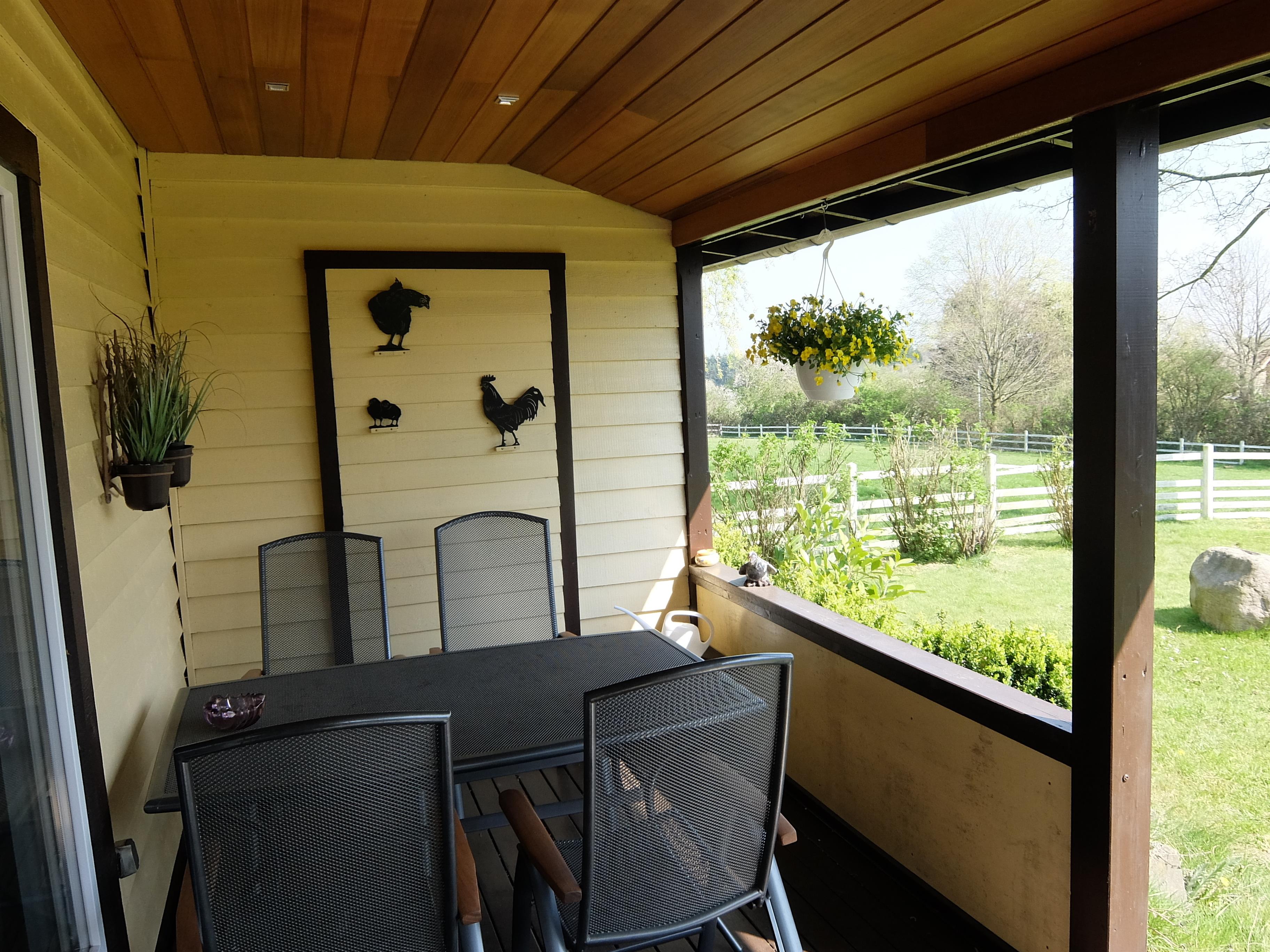 Die überdachte Terrasse ermöglicht es Ihnen, bei jedem Wetter die frische Luft zu genießen. Und das Beste: Auch ein Hund darf Sie gerne begleiten!