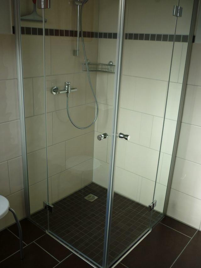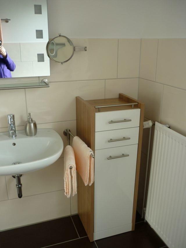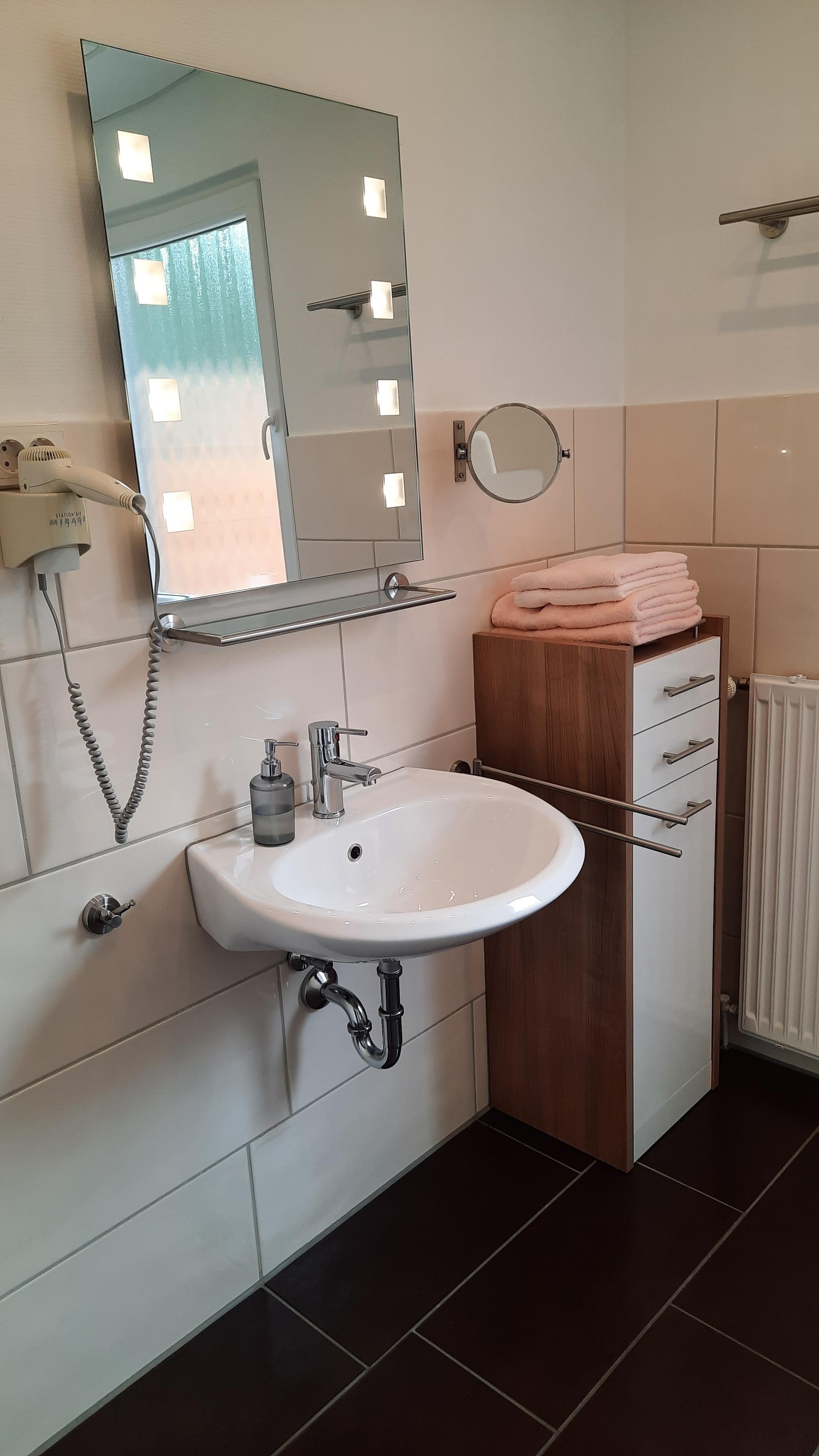 Der Flur und das Bad befinden sich auf einer Ebene.
