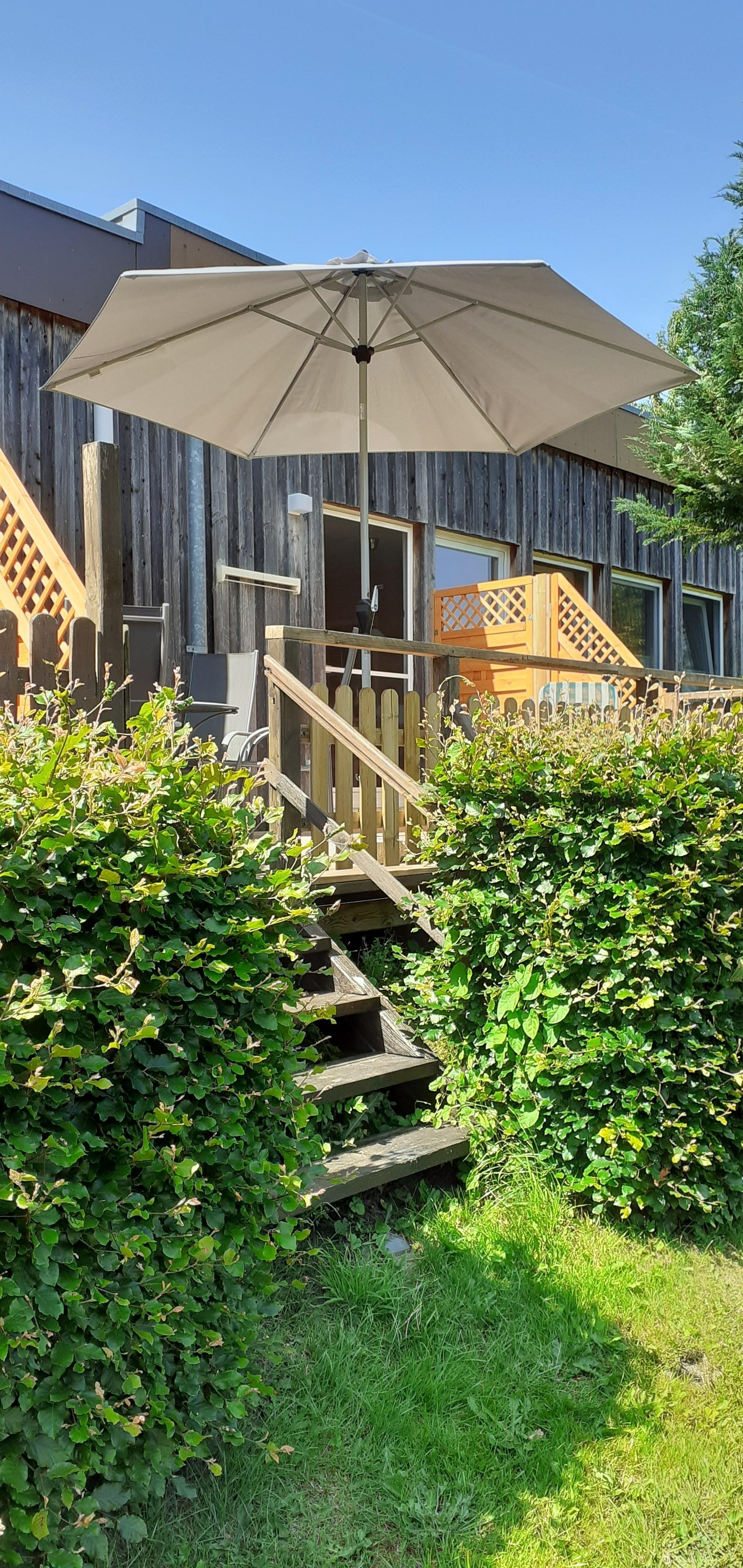 Ruhige Ferienwohnungen in Holzdorf – Zwei moderne Ferienwohnungen mit je 2 Schlafzimmern, eigener Terrasse, Einbauküche und separatem Abstellraum für Fahrräder. Inklusive Handtücher, WLAN & Endreinigung