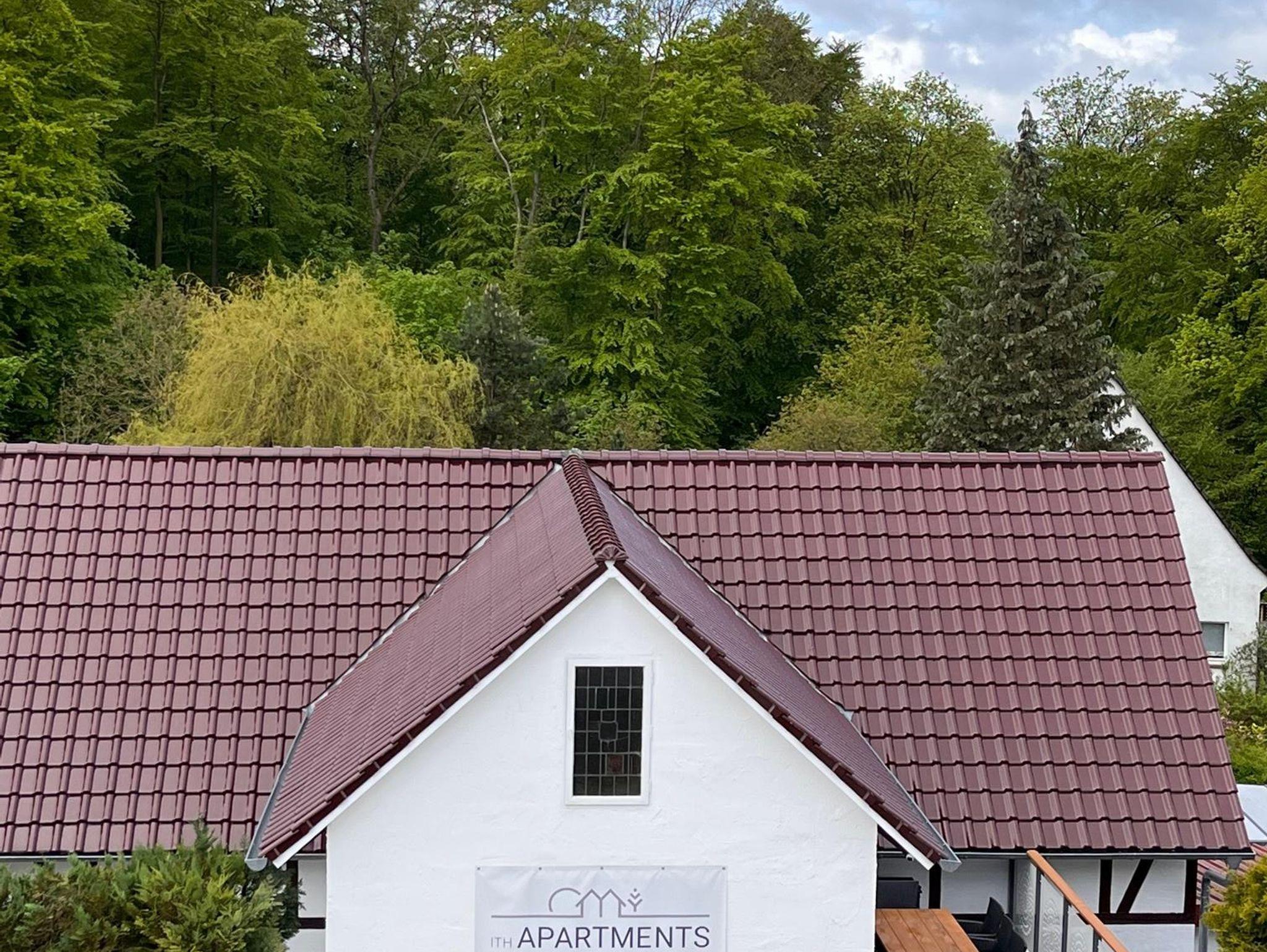 Das im Jahr 2022 komplett renovierte Haus (im Sommer kühl, im Winter gemütlich warm) liegt direkt AUF DEM ITH, am Europawanderweg, mitten im Naturschutzgebiet, nahe dem ITH-Kletterparadies und besteht aus zwei abschließbaren identischen Apartments mit je 28 m² ( Vorraum, Wohn-/Schlafraum, Bad), mit gemeinsamem Wohnraum/Küche von 22 m² und 2 Terrassen (Süd und Nord) von je ca.15 m². Das Haus kann von bis zu 8 Personen bewohnt werden. Alle Räume befinden sich auf einer Etage, die Eingangstür und die Nordterrasse sind über vier Stufen zu erreichen. Die Küche ist komplett ausgestattet (Geschirrspüler, Kaffeemaschine, Backofen, Toaster, Wasserkocher, Kühlschrank, Spargel-/Spagettikochtopf etc.) WLAN, großer Parkplatz direkt am Haus, abschließbarer Fahrradraum, Grill und Feuerstelle, wo man den Abend gemütlich ausklingen kann, stehen unseren Gästen kostenlos zur Verfügung. Alle Betten sind bei Anreise mit frischer weißer Bettwäsche (Deckengröße 155 x 220 cm) bezogen, frische Handtücher stehen allen Gästen zur Verfügung. Diese Annehmlichkeiten sind inkludiert: Toilettenpapier, Duschgel, Shampoo, Handseife, Hygienespray, Spülmittel, Spülmaschinentabs, Kaffeebohnen, Tee, Zucker, Salz, Pfeffer, Backpapier, Alufolie, Fleecedecken und Polsterauflagen für die Terrassenmöbel sowie eine kleine Bibliothek und Ausflugstipps in der Umgebung. Eine Waschmaschine und ein Wäschetrockner stehen ab der 8. Übernachtung oder nach Absprache zur Verfügung. Das Rauchen ist im gesamten Haus nicht gestattet. Aschenbecher befinden sich auf der Terrasse und auf dem Biertisch/Parkplatz. Wir sind große Tierliebhaber, aber da wir allergikerfreundliche Apartments anbieten, sind die lieben Vierbeiner in diesem Haus leider nicht erlaubt. Wir empfehlen dieses Haus nur für Erwachsene, da das Grundstück nicht eingezäunt ist.
