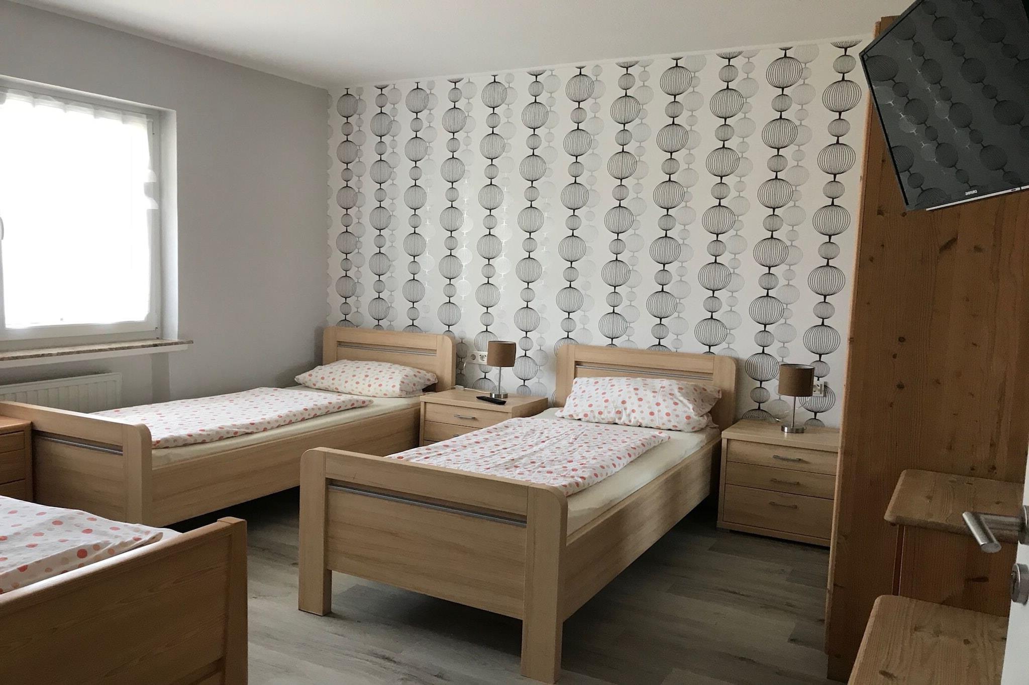 Verbringen Sie Ihren Urlaub in dieser idyllischen Oase in Waßmuthshausen, einem malerischen Ortsteil von Homberg/Efze im nordhessischen Bergland. Das charmante Fachwerkstädtchen liegt nur 4 km vom Ortskern entfernt und bietet ein ruhiges, authentisches deutsches Erlebnis. Die geräumige Ferienwohnung verfügt über drei separate Schlafzimmer und ist komfortabel eingerichtet – ideal für Familien oder Gruppen. Entspannen Sie auf Ihrer privaten Terrasse oder genießen Sie den wunderschön angelegten Garten, der exklusiv den Gästen vorbehalten ist. Naturliebhaber werden den nahegelegenen Wildpark Knüll (nur 2 km entfernt) und die ausgedehnten Rad- und Wanderwege durch die malerische Landschaft zu schätzen wissen. Entdecken Sie die lokale Kultur und die Sehenswürdigkeiten bei Tagesausflügen nach Kassel (35 km), Melsungen (22 km), Fritzlar (15 km) und in die historische Stadt Homberg (4 km). Dieses Ferienhaus ist ein idealer Ausgangspunkt, um Entspannung, Outdoor-Aktivitäten und kulturelle Entdeckungen zu verbinden.