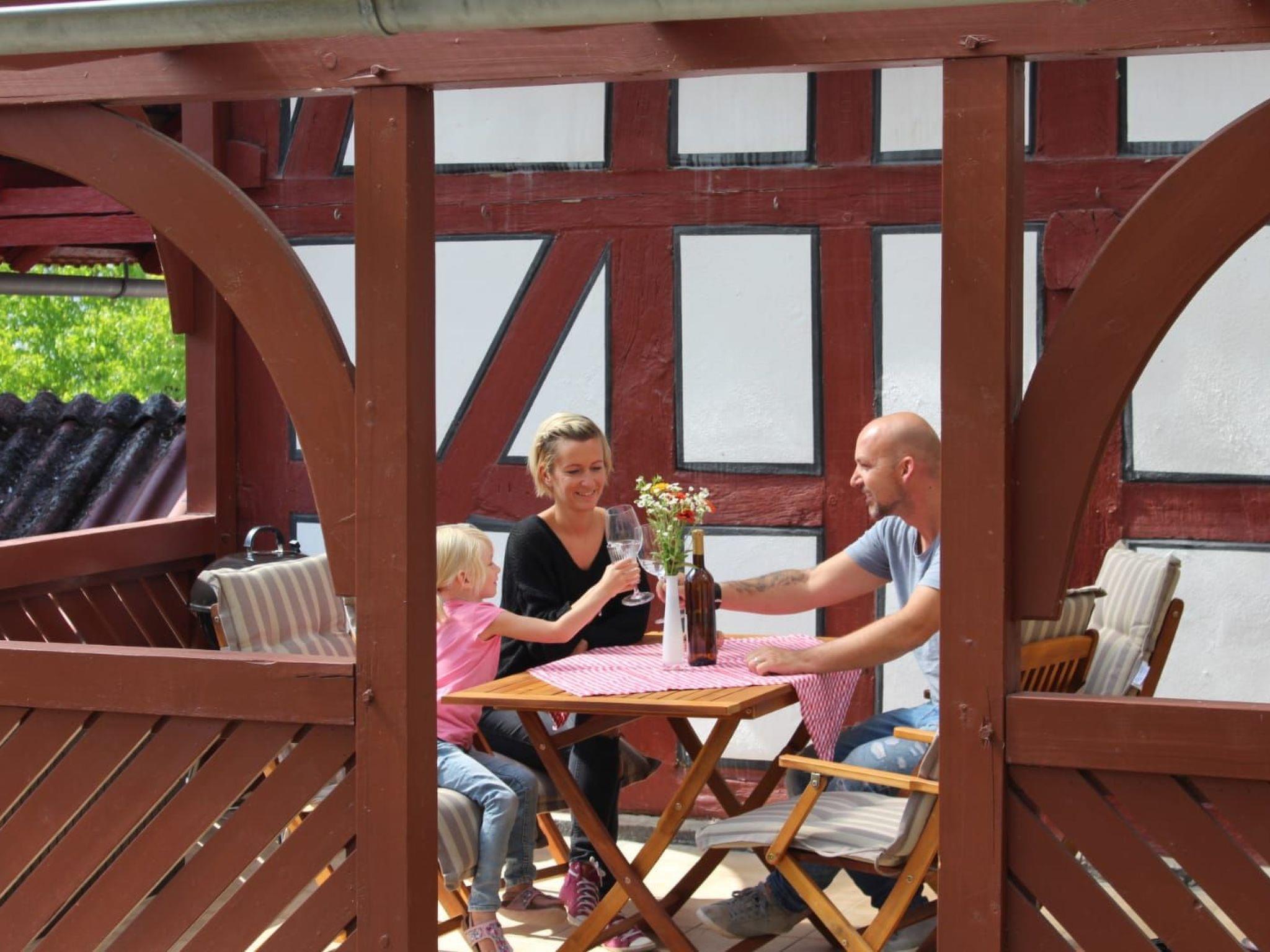Nach einem erlebnisreichen Ausflug können Eltern und Kinder auf der großen überdachten und beleuchteten Terrasse im Garten den Tag ausklingen lassen. Dort stehen sowohl Gartenmöbel als auch ein Grill zur freien Nutzung zur Verfügung.