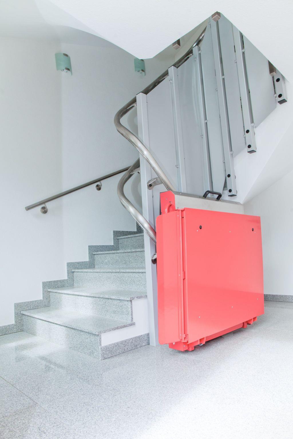 Im großzügigen Treppenhaus befindet sich ein Plattformlift, den gehbeeinträchtigte Personen kostenlos nutzen können.