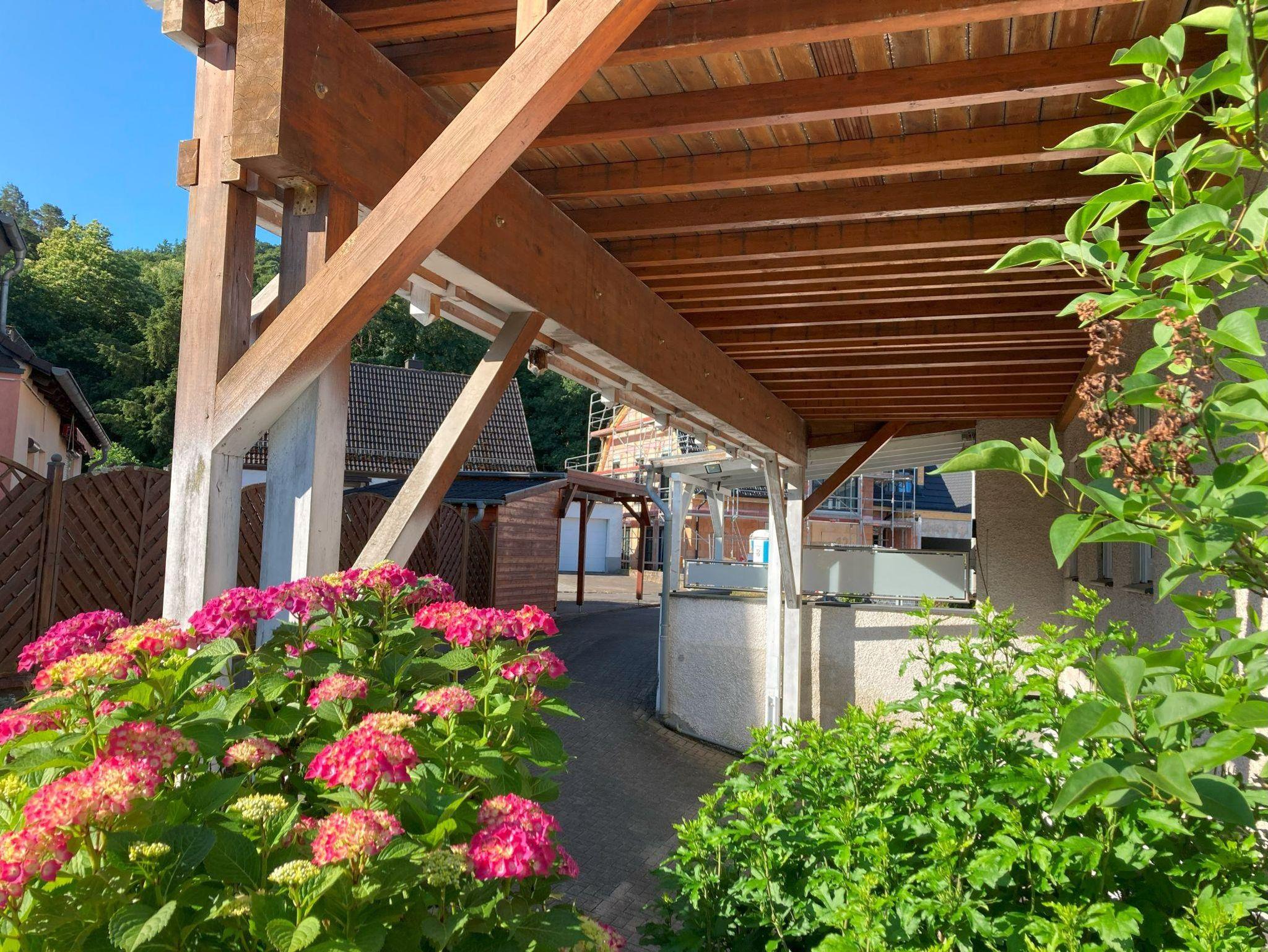 Die Ferienwohnung befindet sich im 1. Obergeschoss eines Mehrfamilienhauses mit insgesamt 4 Wohneinheiten, das im Jahr 1980 erbaut wurde. Auf 70 m² erwarten Sie ein helles Wohn-/Esszimmer, ein Schlafzimmer, eine gut ausgestattete Einbauküche und ein Bad mit Dusche. Der Balkon ist der ideale Ort, um den Tag entspannt ausklingen zu lassen. Hier können Sie die frische Luft genießen, den Blick auf den Wald schweifen lassen und den Abend in ruhiger Atmosphäre verbringen.