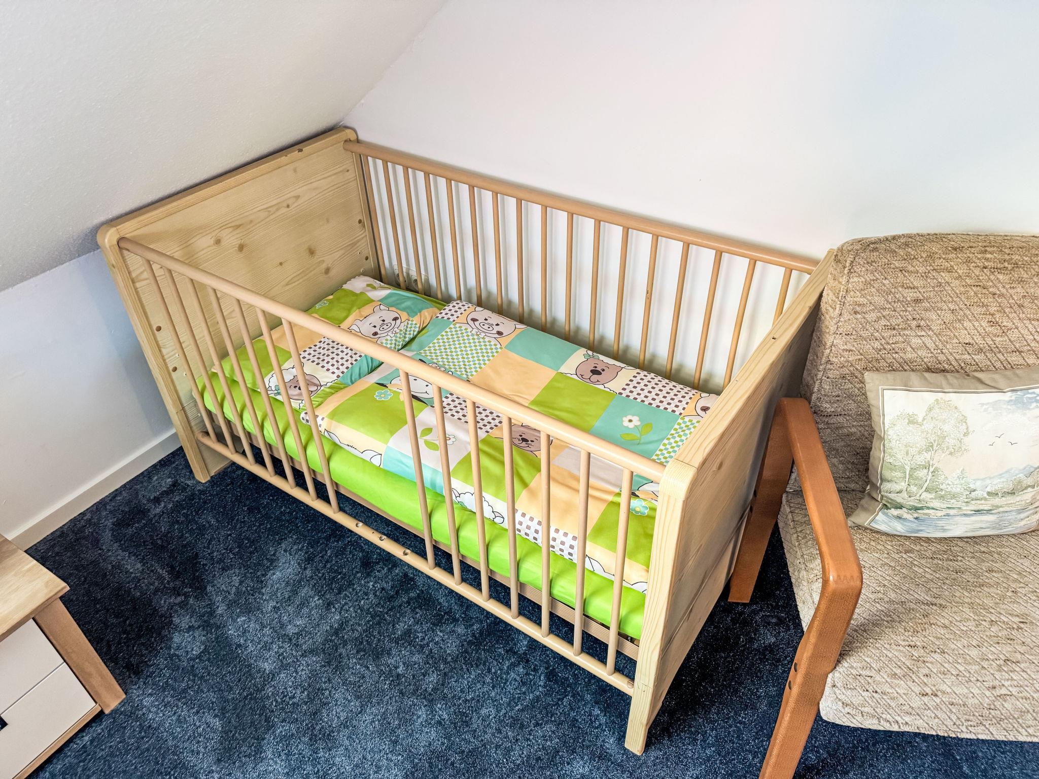 4-Zimmer-Wohnung 140 m2 auf 2 Stockwerken. Gemütlich eingerichtet: Obergeschoss: abgeschrägtes Wohnzimmer mit Kabel-TV und Radio. 2 abgeschrägte Zimmer, jedes Zimmer mit 1 Doppelbett (2 x 90 cm, Länge 200 cm). Offene Küche (4 Kochplatten, Backofen, Toaster, Wasserkocher, Mikrowelle, elektrische Kaffeemaschine). Bad/WC. Dachgeschoss: 1 abgeschrägtes Zimmer mit 2 Betten. Dusche/WC. Zur Verfügung: Kinderhochstuhl, Babybett. Internet (WLAN, gratis). Bitte beachten: Nichtraucher-Unterkunft. Rauchmelder.