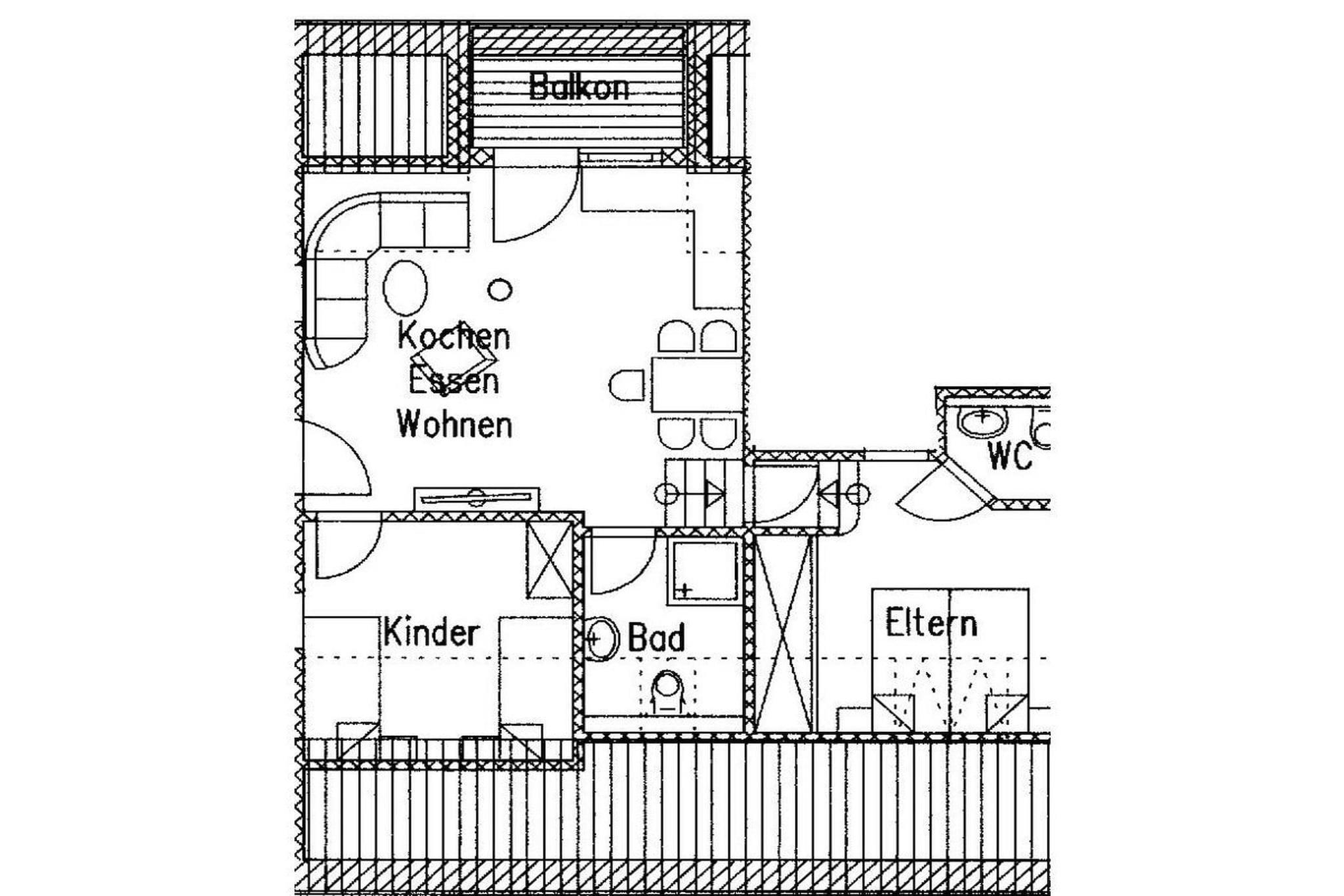 In der 1. Etage: (Küche(, , , Kochnische, TV, Esstisch, Herd, Kochplatte, Wasserkocher, Toaster, Kaffeemaschine, Mikrowelle, Spülmaschine, Kühlschrank, Tiefkühlschrank), Wohn/Esszimmer(, , TV, Esstisch), Schlafzimmer(, Einzelbett, Einzelbett, TV), Schlafzimmer(, Doppelbett, TV), Badezimmer(, Toilette, Dusche, Waschbecken, Heizung, Föhn), guest toilet(, Toilette, Waschbecken)) , , Internet, Erste-Hilfe-Station, Balkon(, Balkon), Parkplatz, Bügelbrett, Bügeleisen