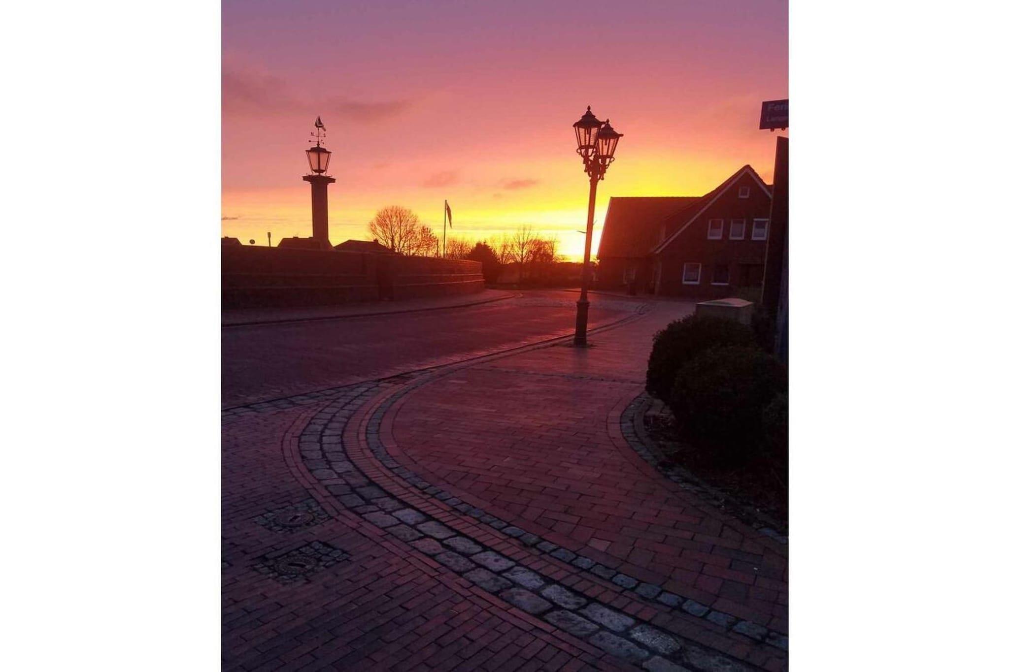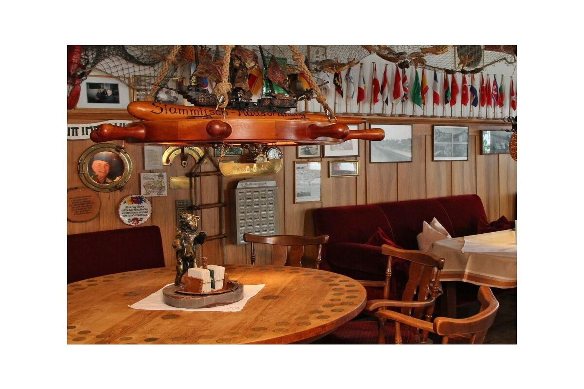 Moderne Ferienwohnung in Hooksiel mit Blick auf den alten Hafen und Nähe zum Restaurant "Zum Schwarzen Bären".