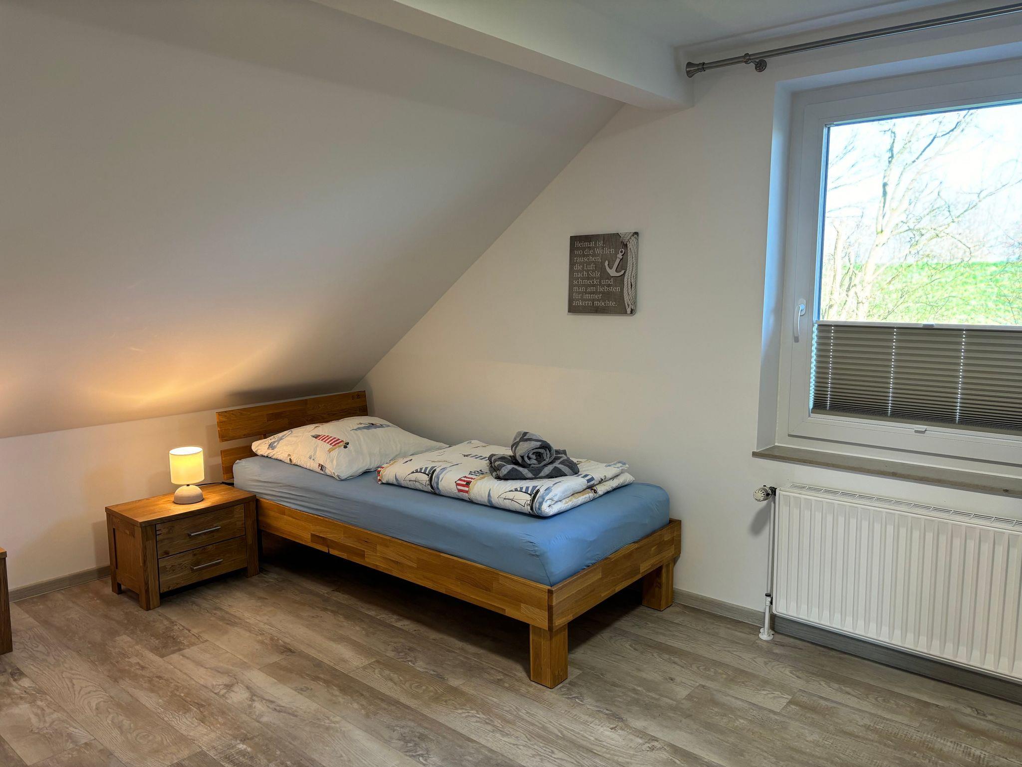 Willkommen im Haus Deichblick 2! Dieses charmante Ferienhaus überzeugt durch seine durchdachte Aufteilung auf zwei Ebenen. Das Erdgeschoss empfängt Sie mit einem hellen Wohnraum, der Küchen- und Essbereich harmonisch vereint. Ein Kamin sorgt hier für behagliche Stunden, während Sie vom Wohnzimmer aus direkt auf die Terrasse und in den Garten gelangen. Ein komfortabler Schlafraum mit Doppelbett sowie ein Badezimmer mit Dusche befinden sich ebenfalls im Erdgeschoss.