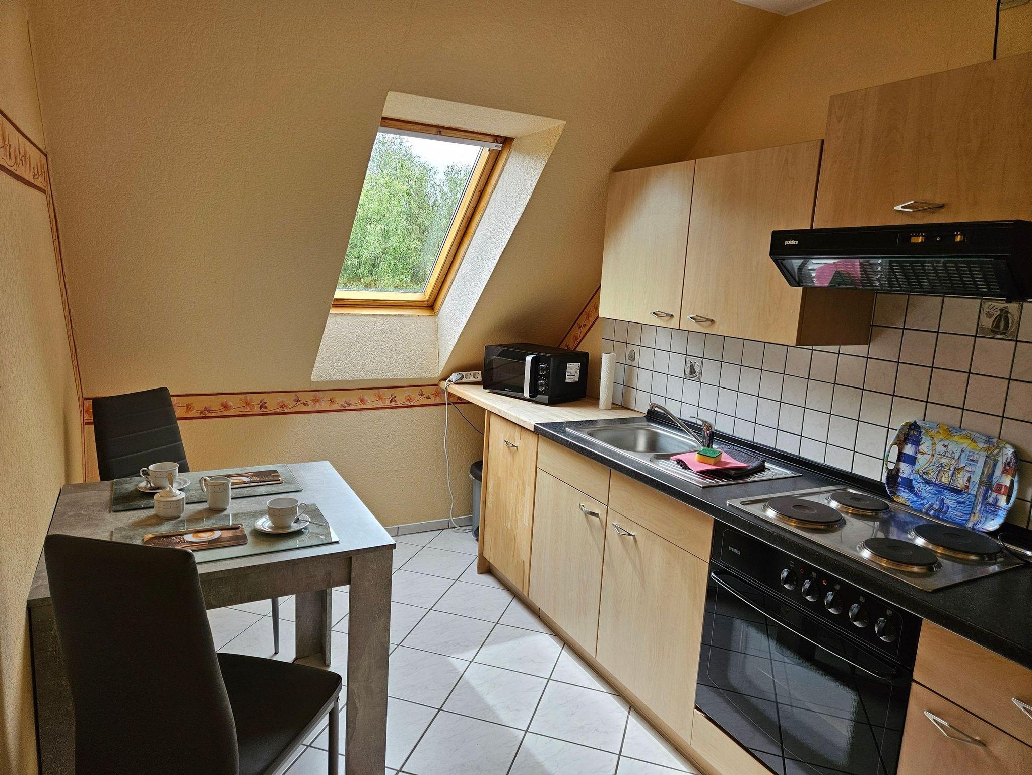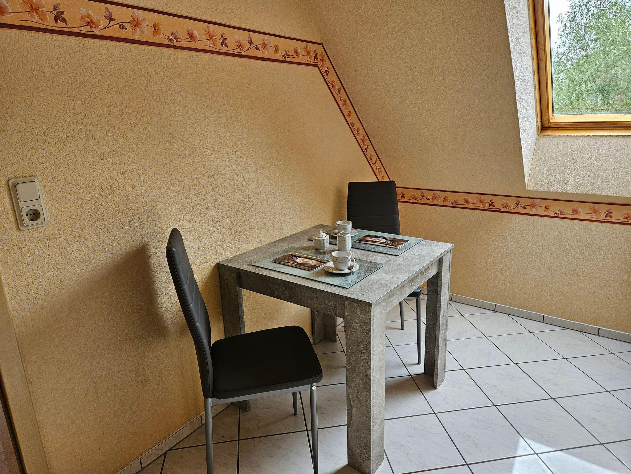 Die gemütliche Wohnung befindet sich im 1. Obergeschoß eines Einfamilienhauses mit zwei Ferienwohnungen und ist modern eingerichtet. Sie bietet einen Wohnraum, eine Küche, ein Schlafzimmer und ein Bad mit Tageslicht.