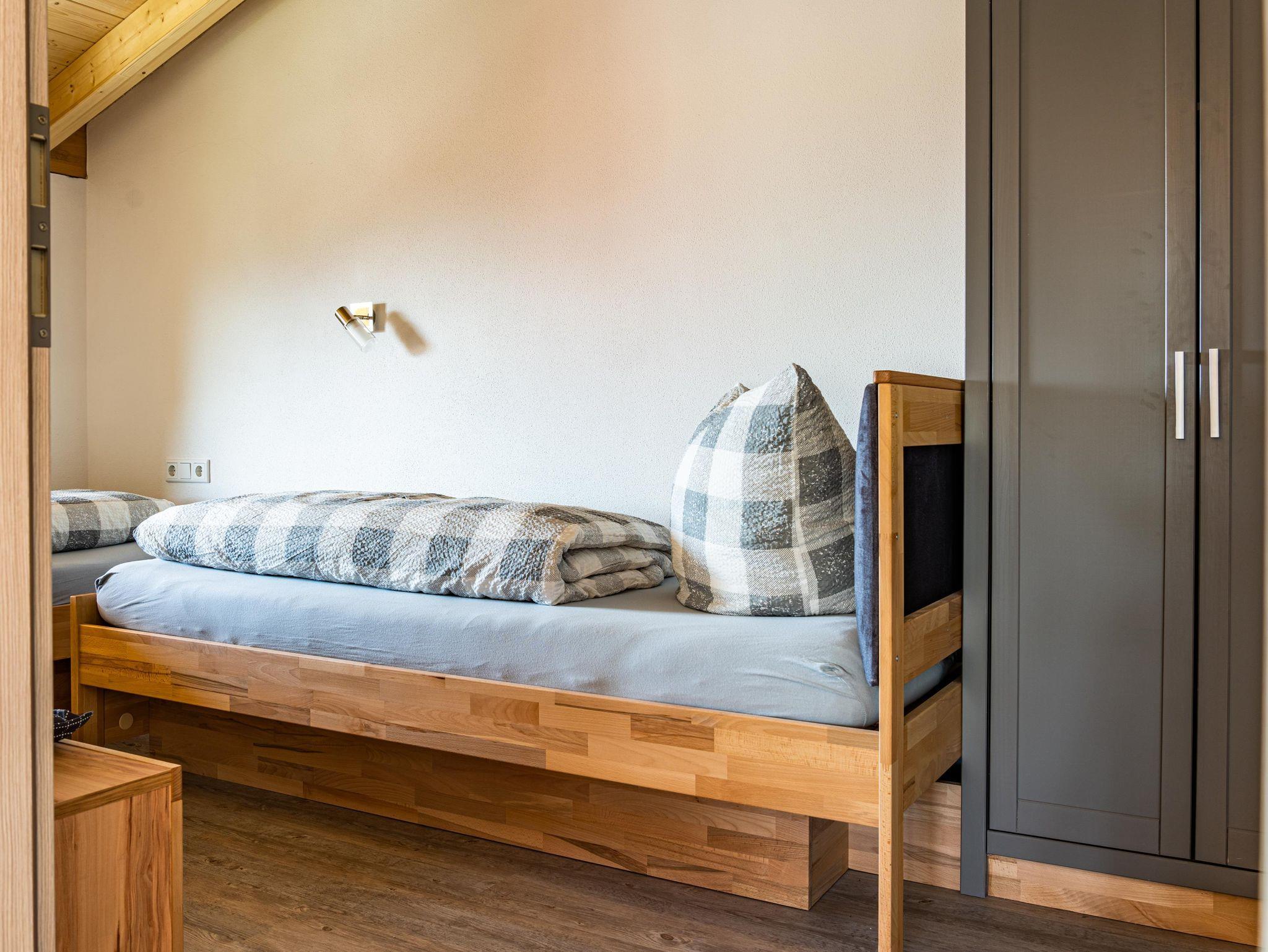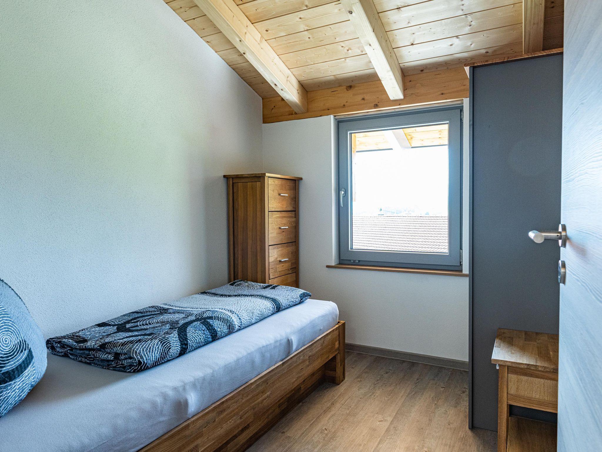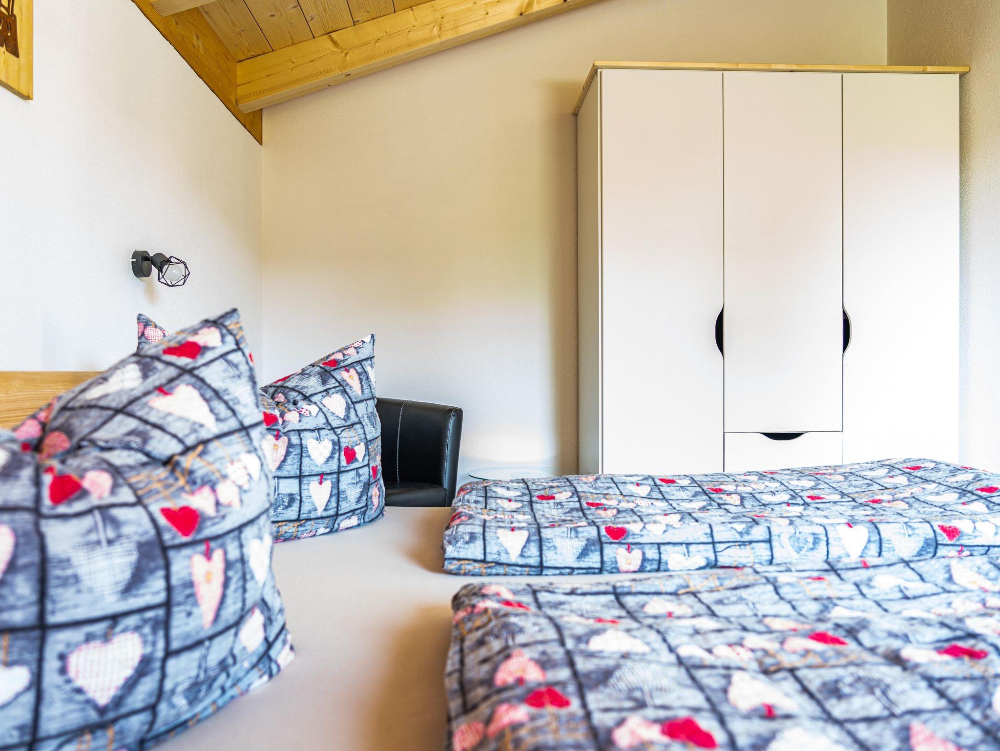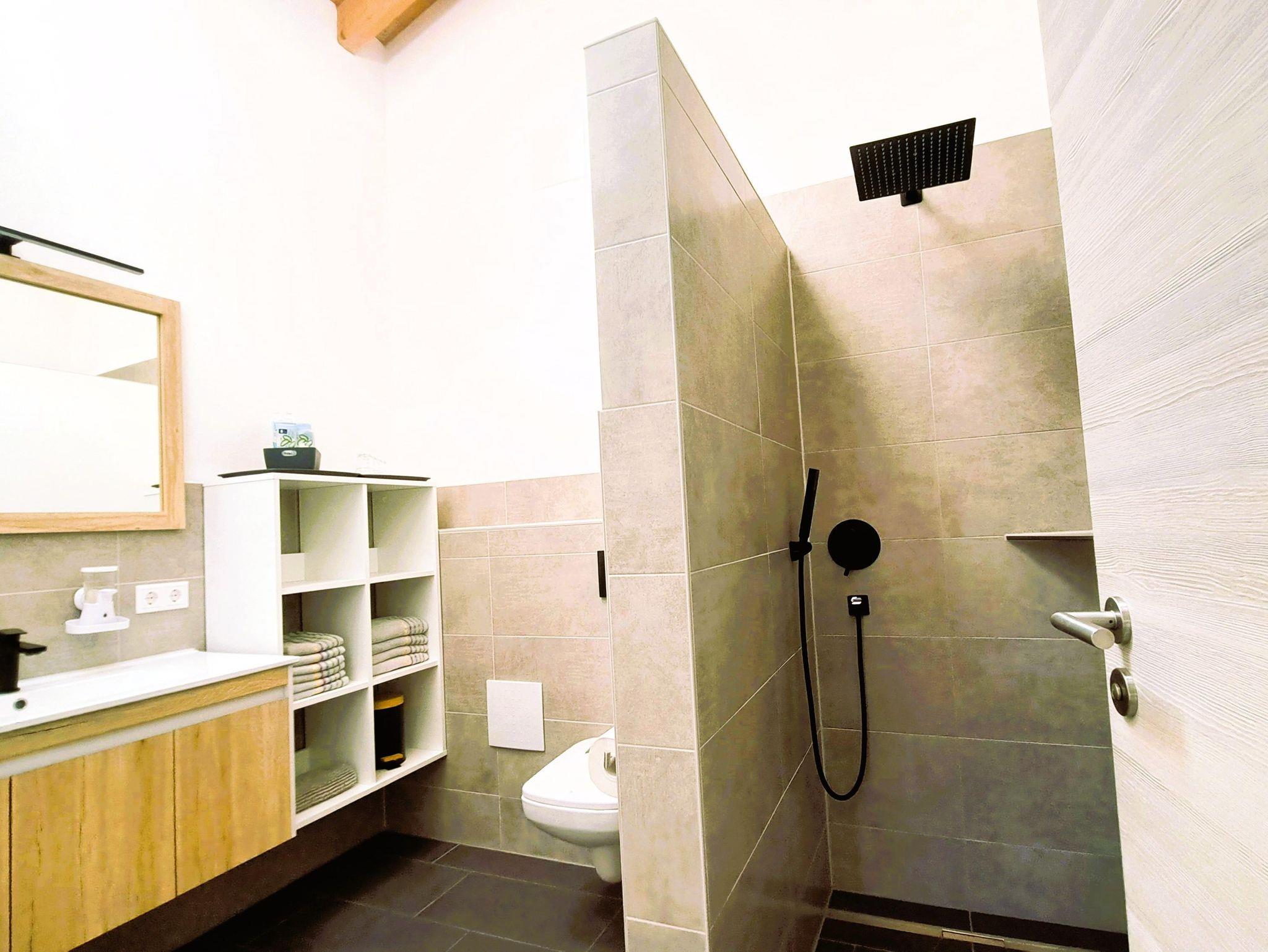 Unsere neue Ferienwohnung „Lederhose“ für bis zu 5 Personen bietet 3nSchlafzimmer (1 Doppel-, 1 Zweibett- u. 1 Einzelzimmer mit elektrischen Außenrollos zur Verdunkelung) und ist somit besonders für Familiengeeignet.Der freundliche Wohnbereich mit offenem Sichtdachstuhl ist für Sie mit gemütlicher Fernseh-Couch, Essbereich und moderner Küche mit Spülmaschine und Induktionsherd ausgestattet. Das moderne Badezimmer besticht mit ebenerdig begehbarer Regendusche.