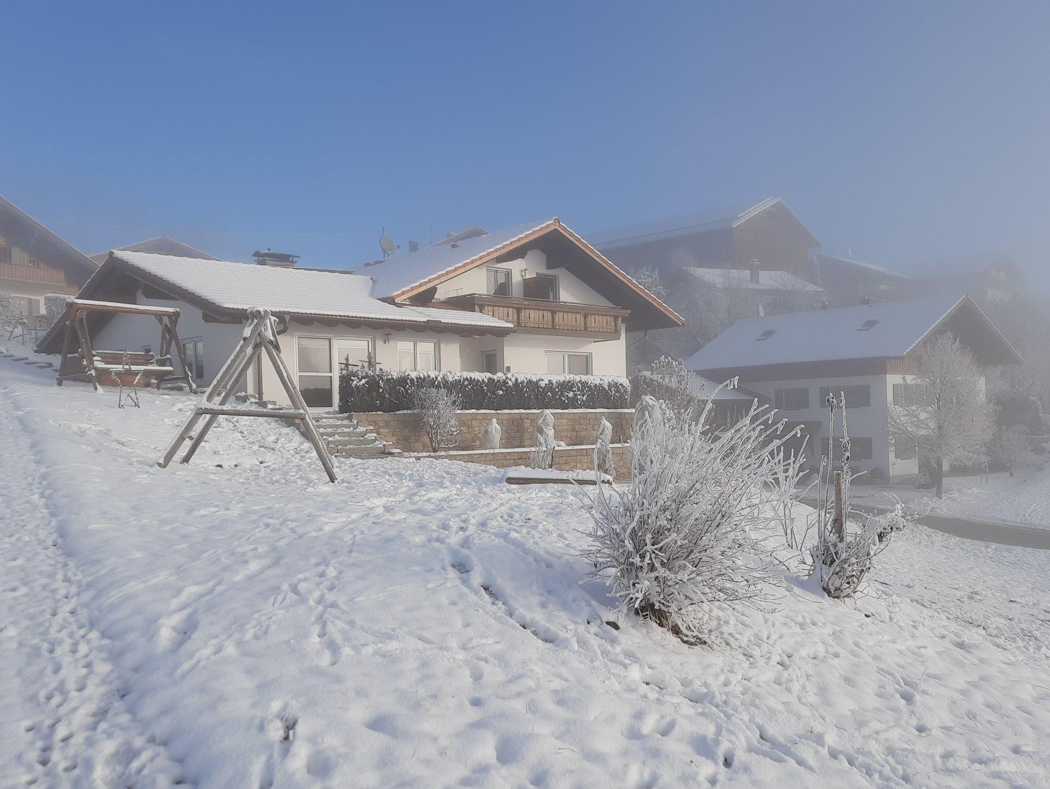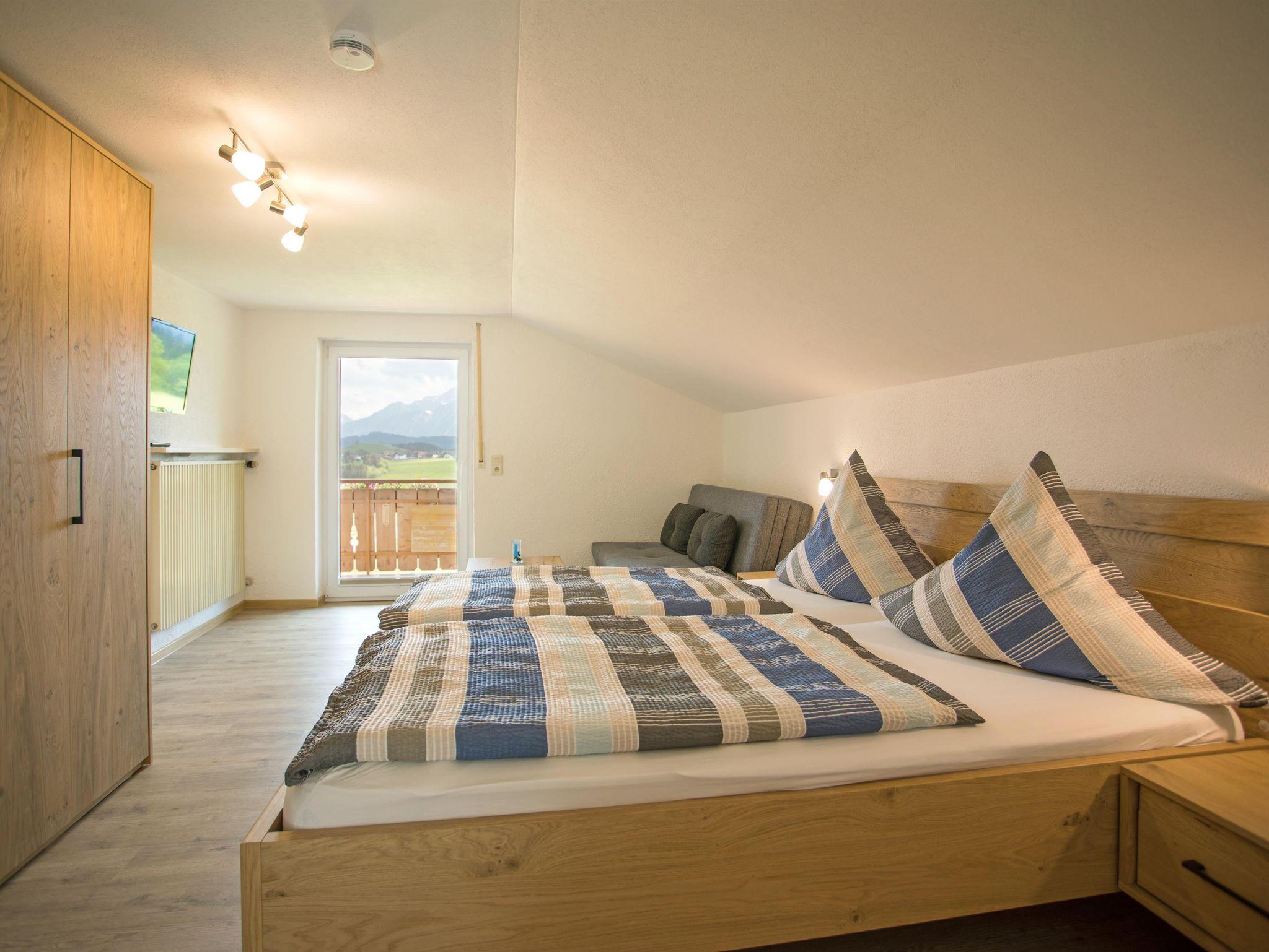 Verbringen Sie Ihren Urlaub in unserer 45 m² großen Ferienwohnung (Dachgeschoß), bestehend aus einer kleinen Wohnküche (Küchenzeile mit Essecke und TV), einem Schlafzimmer (mit zusätzlicher Schlafcouch und TV), Dusche/ WC und Südbalkon (mit Blick über die Allgäuer Alpen bis hin zu Schloß Neuschwanstein). WLAN gratis. Bettwäsche, Dusch- und Handtücher vorhanden. Parkplatz am Haus, Abstellmöglichkeit für Fahrrad und Ski/Schlitten in Garage möglich. Im Garten Sitz- und Liegemöglichkeit, Schaukel, Trampolin unt Tischtennis - Rodelhang am Haus.