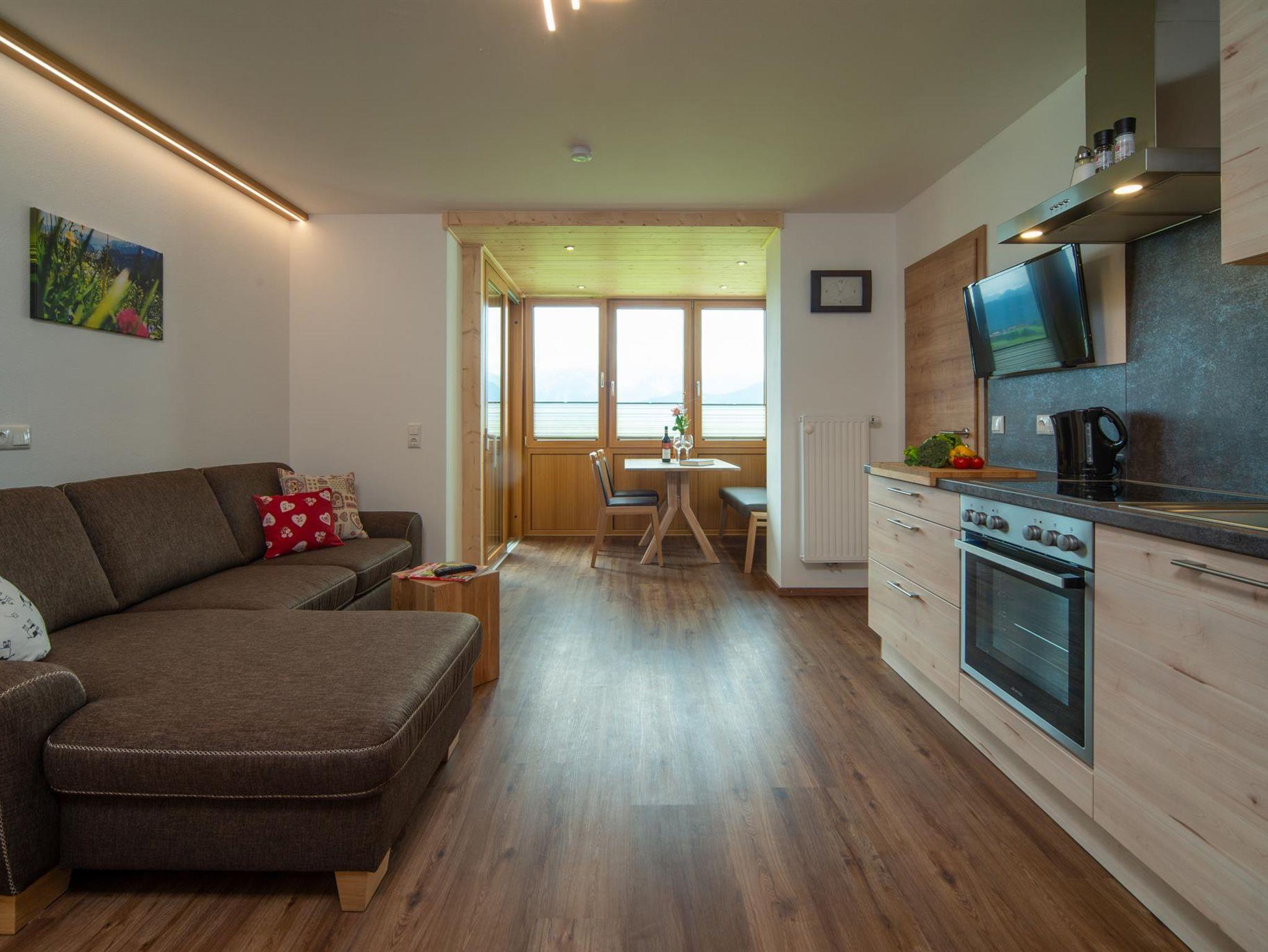 Die Ferienwohnung Meisennest verfügt über einen Wintergarten auf dem Süd-Balkon (Essbereich), der eine traumhafte Aussicht auf die Berge, das Schloß und den Hopfensee bietet. Die Fewo setzt sich aus einem Wohn-Schlafraum, 1 separaten Schlafzimmer, Badezimmer mit Dusche und einem separaten WC zusammen. Die Wohnung ist kombinierbar mit den Doppelzimmer Fuchsbau und bietet somit Platz für max. 4 Pers. Die Ferienunterkunft bietet eine höherwertige Gesamtausstattung mit gehobenem Komfort.