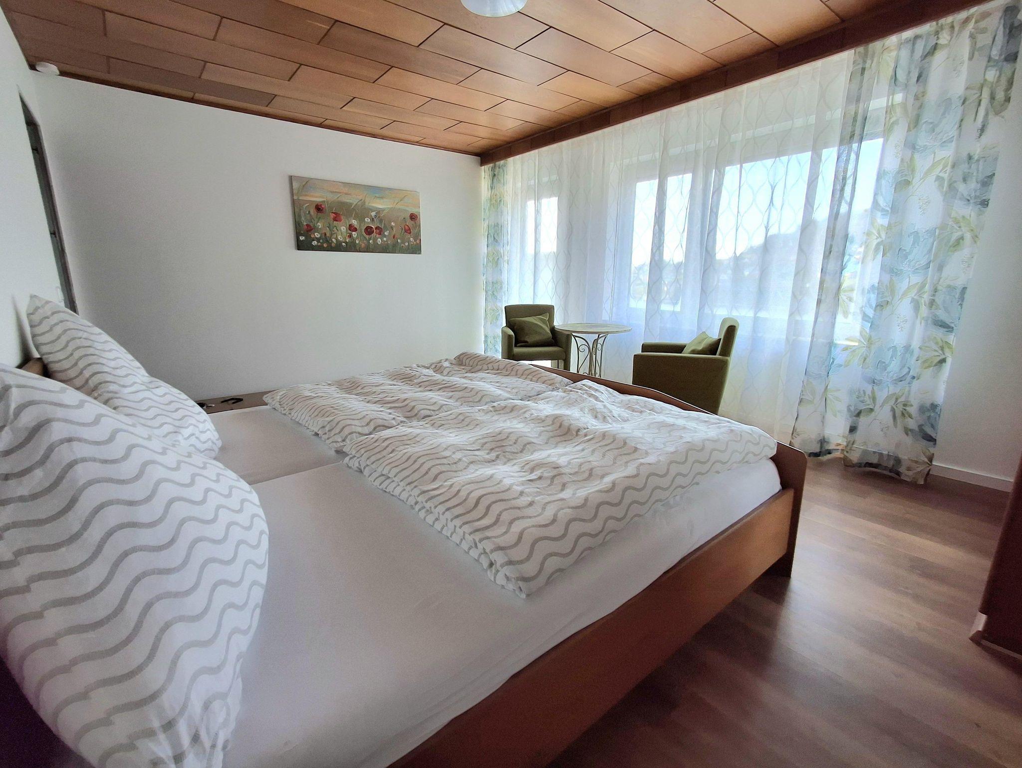 Für gehbehinderte Personen steht ein Treppenlift zur Verfügung, um ins Obergeschoß zu gelangen. Dort gibt es 2 Doppelzimmer und ein separates WC. Bei einem Schlafzimmer haben Sie die Möglichkeit, den Tag auf einem Balkon ausklingen zu lassen.