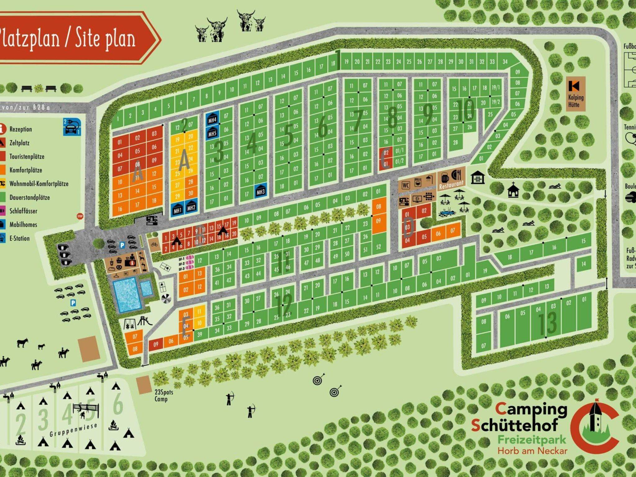 Herzlich willkommen auf unserem Campingplatz! Der Freizeitpark Camping Schüttehof liegt auf 550 m Höhe, 100 Meter oberhalb der historischen Stadt Horb am Neckar - dem Tor zum Schwarzwald.