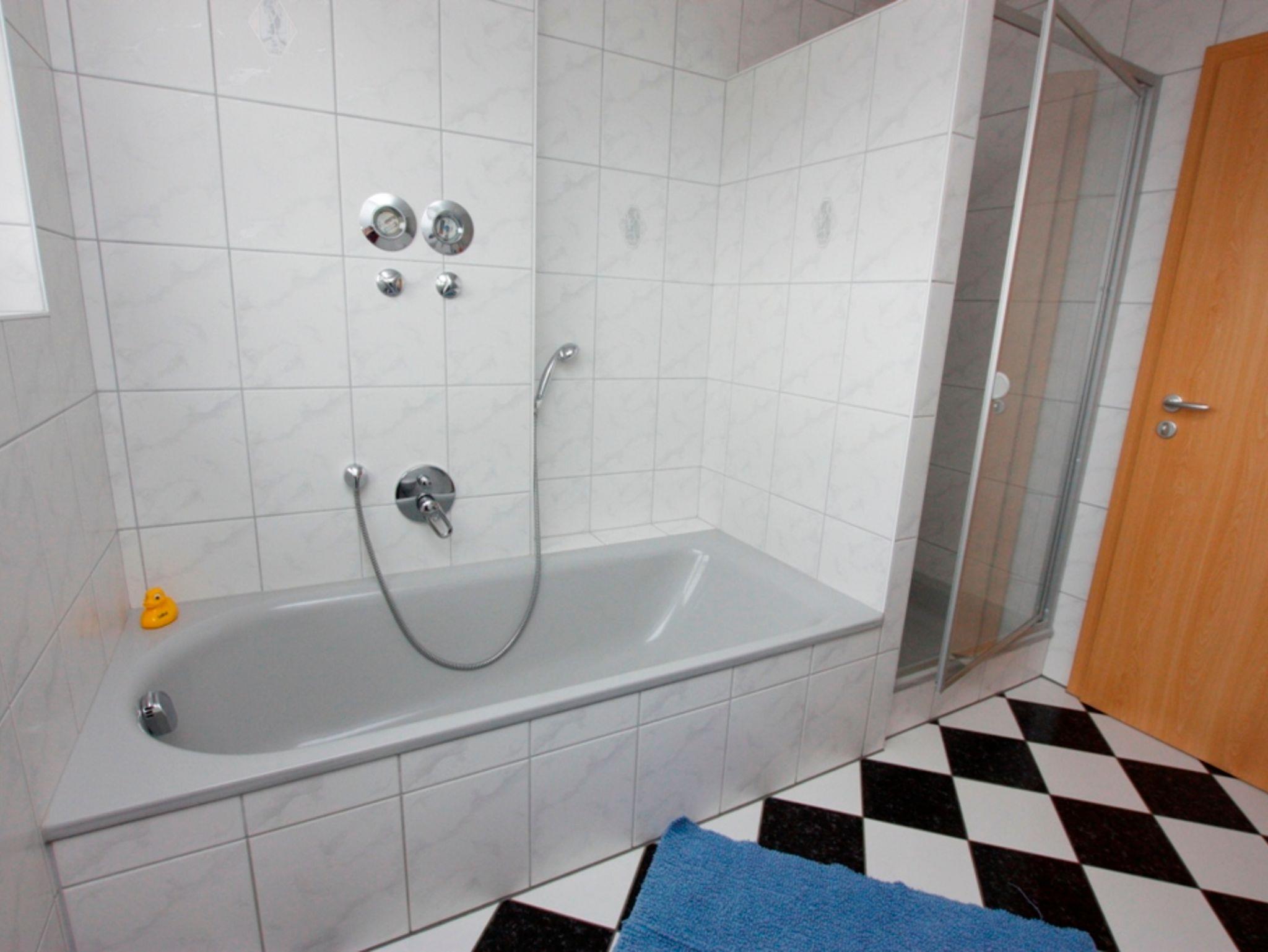 Großzügig geschnittene Wohnung mit zwei Schlafzimmern und Wohn-Essbereich. Die Schlafzimmer sind ausgestattet mit großen Doppelbetten sowie ein Kinderbett, auf Wunsch steht ein Beistellbett zur Verfügung. Das Bad hat eine separate Badewanne und Dusche sowie eine Waschmaschine zur alleinigen Nutzung. Es erwartet Sie eine vollausgestattete Küche mit Backofen, Geschirrspüler und Mikrowelle usw.. Des weiteren verfügt die Wohnung über einen großen Balkon und direktem Zugang zur Terrasse jeweils mit Sitzgelegenheiten. Im Abstellraum steht ein Tiefkühler sowie ein Trockner für Sie bereit. Selbstverständlich verfügen wir über ein Gäste W-Lan. Unsere Wohnung wurde im Februar 2015 mit vier Sternen vom DTV bewertet. Klassifizierung: F****