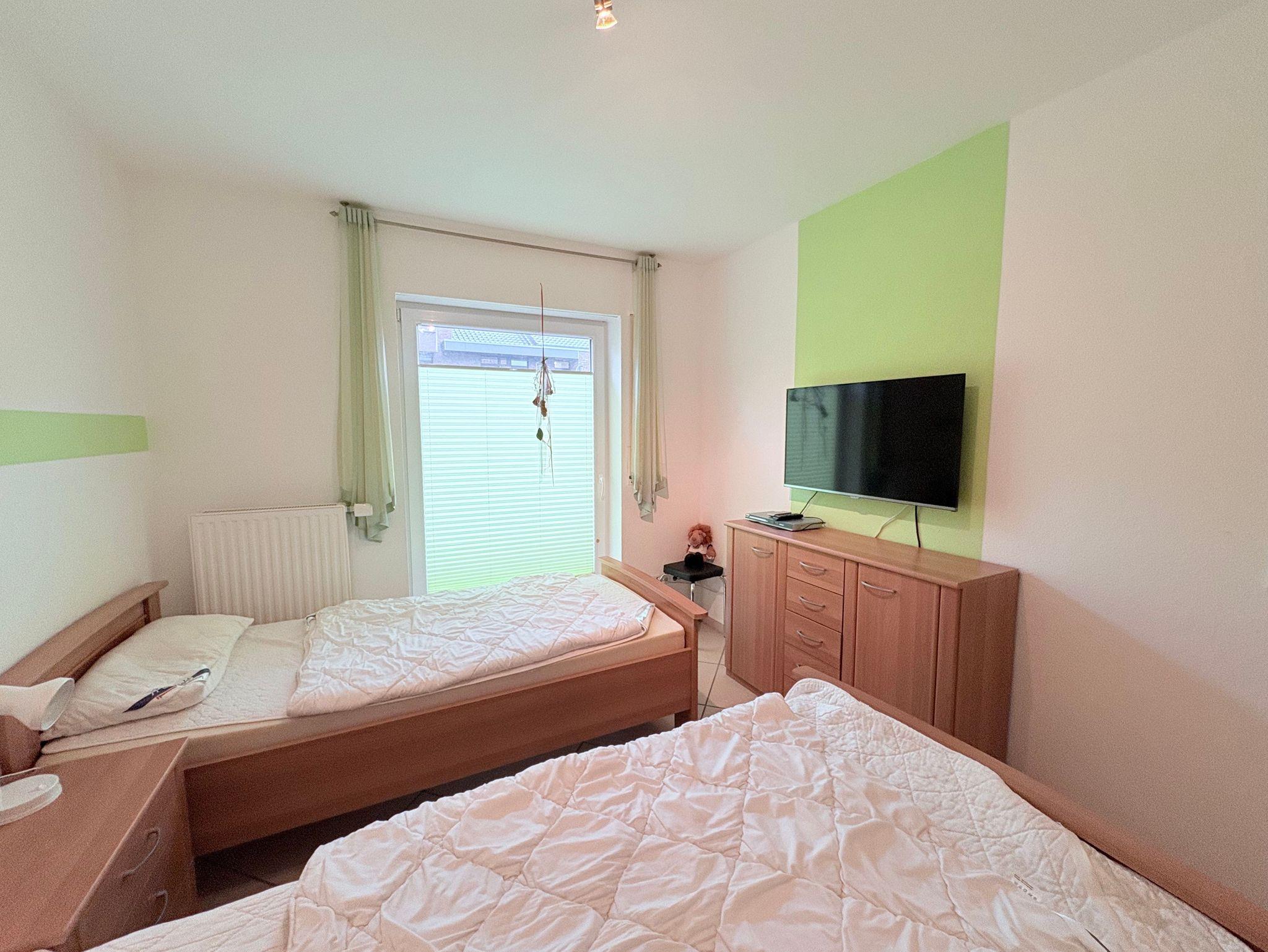 Das erste Schlafzimmer ist mit einem Doppelbett ausgestattet, das zweite Schlafzimmer mit zwei Einzelbetten und einem weiteren Fernseher.