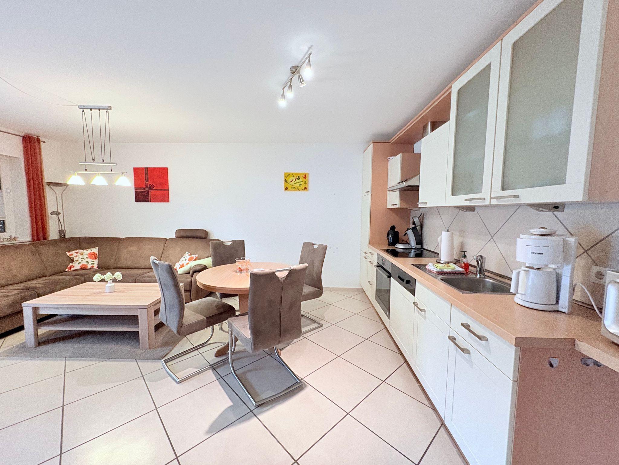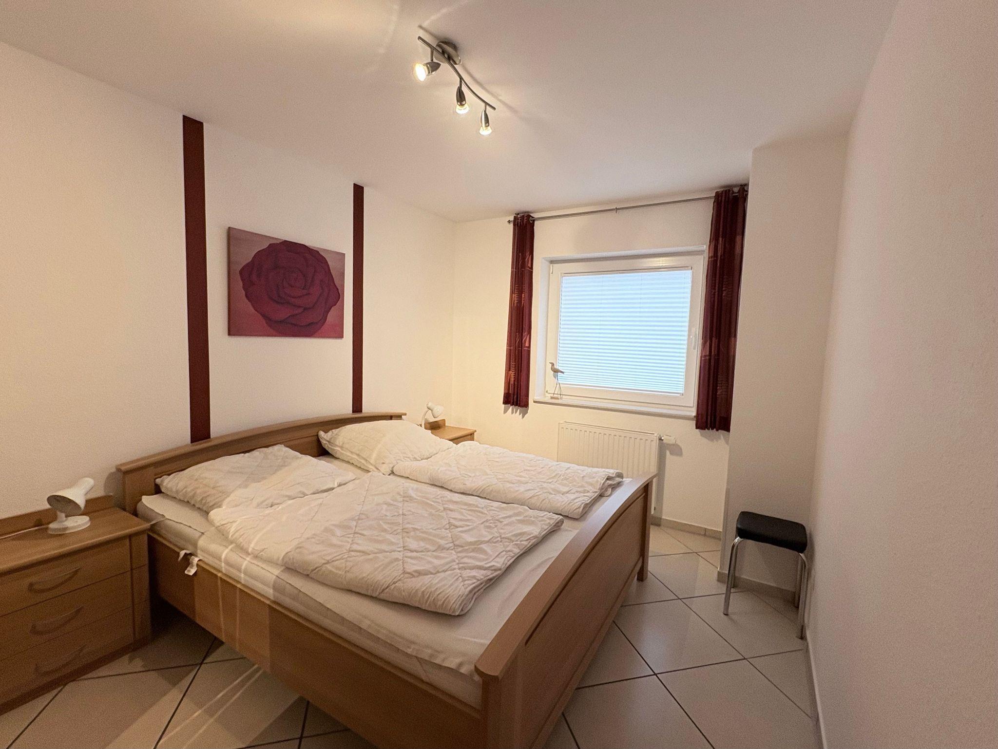 Die helle, geräumige Wohnung mit Internet-Anschluss (WLAN) ist für 4 Personen geeignet. Sie besteht aus einem Wohnzimmer mit Küchenzeile, 2 separaten Schlafzimmern, Duschbad, Abstellraum und Terasse.