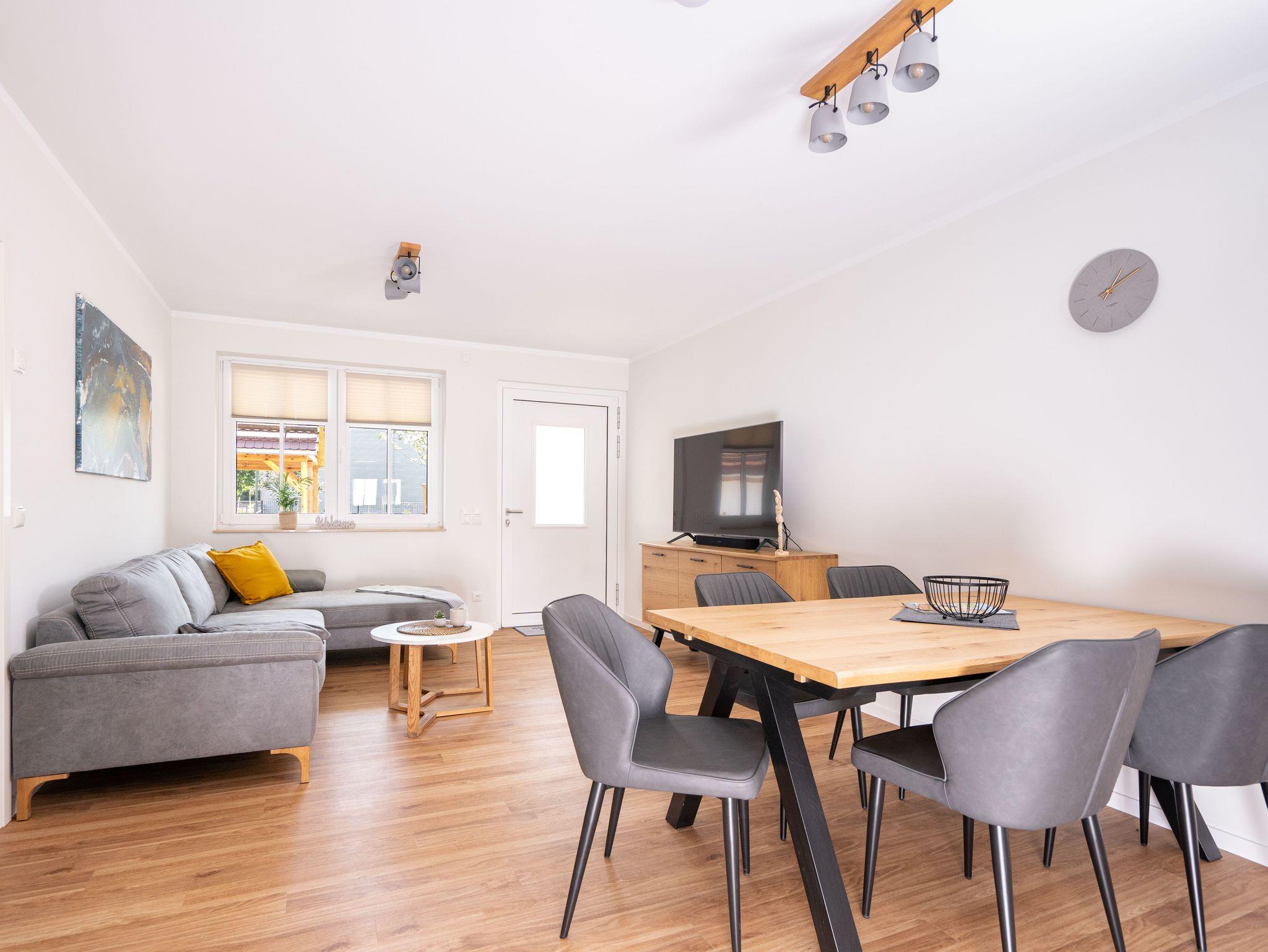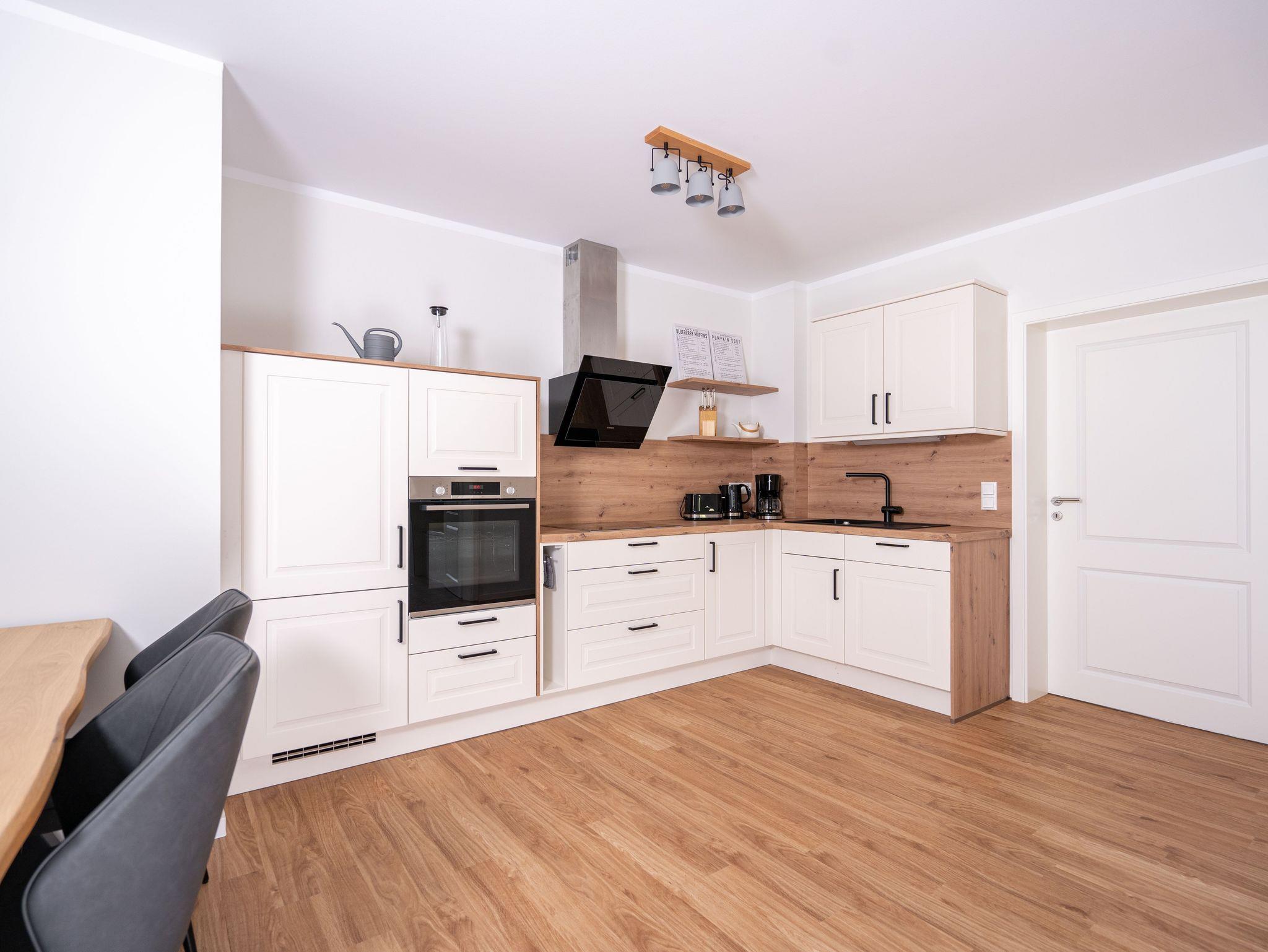 Das Apartment Klaus liegt ebenerdig im Neubau und verfügt über eine sonnige Terrasse mit Blick in den neu angelegten Garten. Über einen separaten Eingang ist das Apartment betretbar und bietet somit viel Privatssphäre. Großzügige 79m² bieten Platz für bis zu 5 Personen, aufgeteilt auf 2 Schlafzimmer jeweils mit Doppelbett. In einem der Schlafzimmer gibt es zusätzlich ein separates Einzelbett. Vierbeinige Freunde sind in diesem Apartment natürlich genau so herzlich Willkommen. Ein Blick in die offene Wohnküche und deren großzügige Ausstattung verrät schon jetzt, wie gemütlich es am Esstisch werden kann. Das helle Bad verfügt über eine Badewanne und eine ebenerdige Dusche für das Maximum an Komfort.