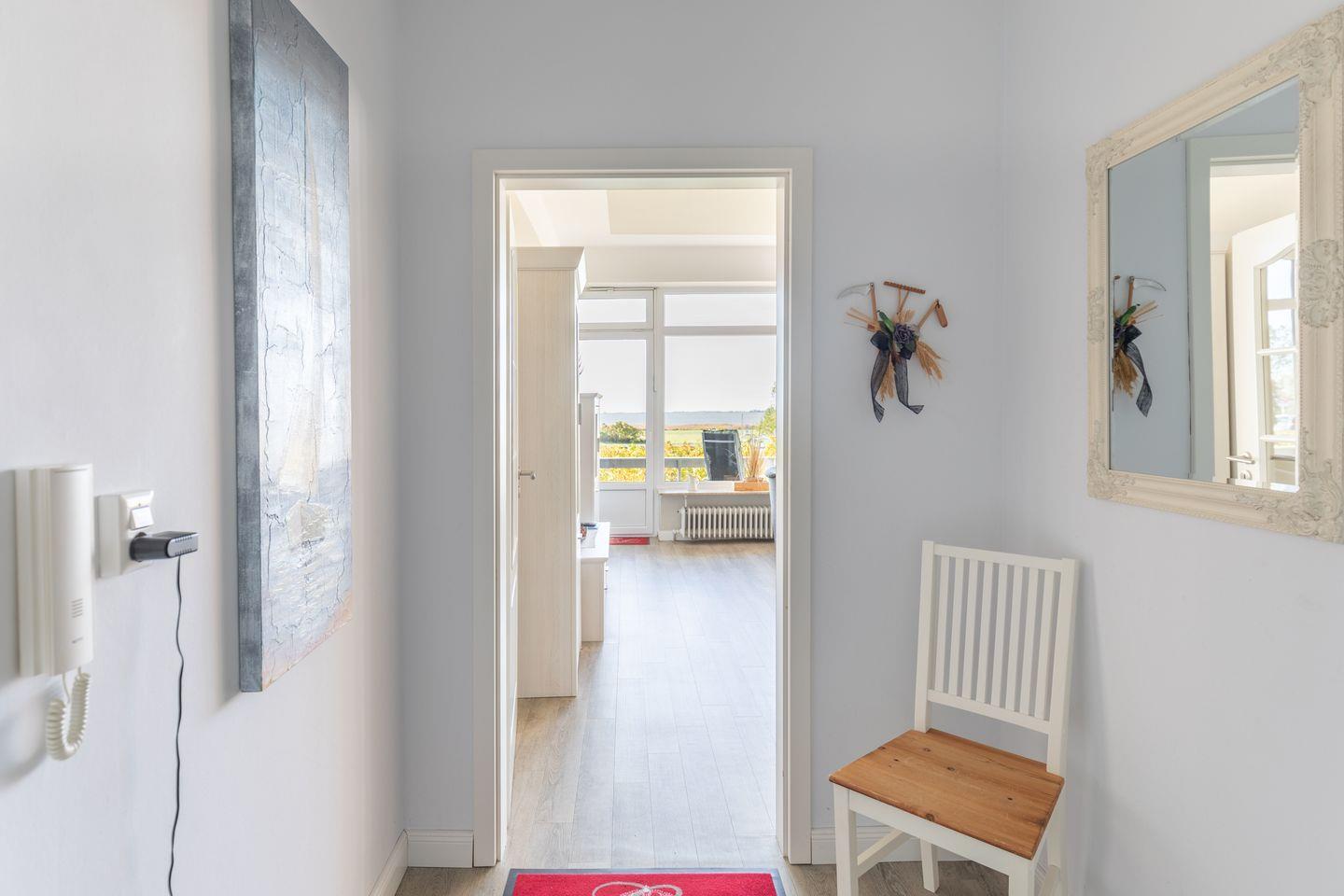 Genießen Sie Nordseeblick in der hochwertigen Ferienwohnung Carpe Diem in Husum-Schobüll mit Balkon und moderner Ausstattung.