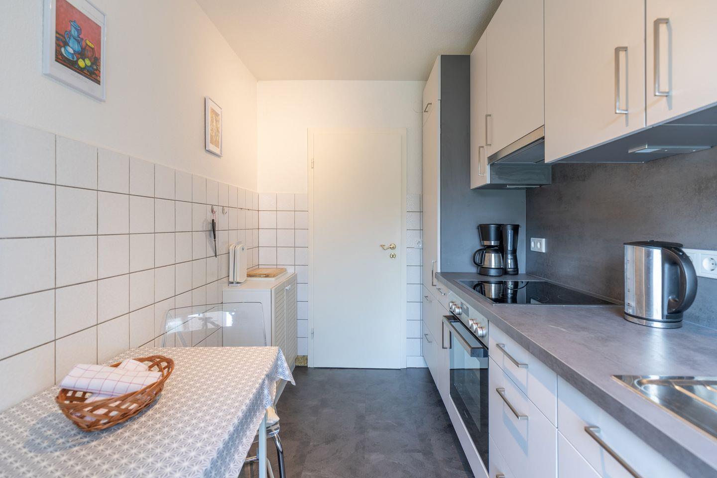 Die 3-Zimmerwohnung verfügt über ein Schlafzimmer mit einem Doppelbett (180 x 200), einen weiteren Schlafraum mit einem Einzelbett (100 × 200), einem Wohnzimmer mit gemütlicher Sofaecke und TV und einer separaten, sehr gut ausgestatteten Küche mit Backofen, Ceranfeld, Geschirrspüler, Toaster, Kaffeemaschine (Filtergröße 4), Wasserkocher uvm. Das Duschbad mit der Waschmaschine ergänzt das Angebot. Setzen Sie sich einfach an den Esstisch oder aber auf den Balkon und genießen Sie den Ausblick auf die Nordsee … schöner geht’s kaum!