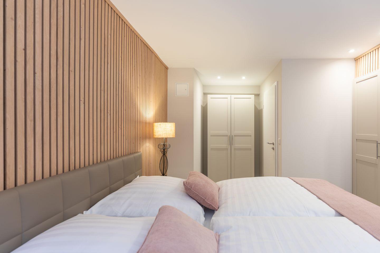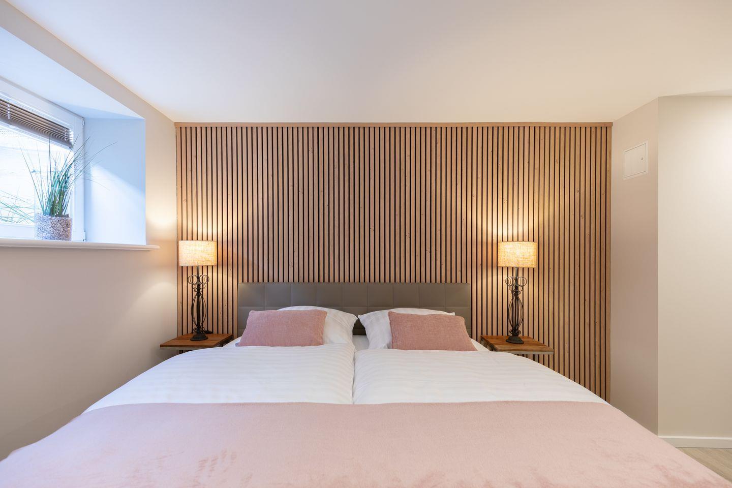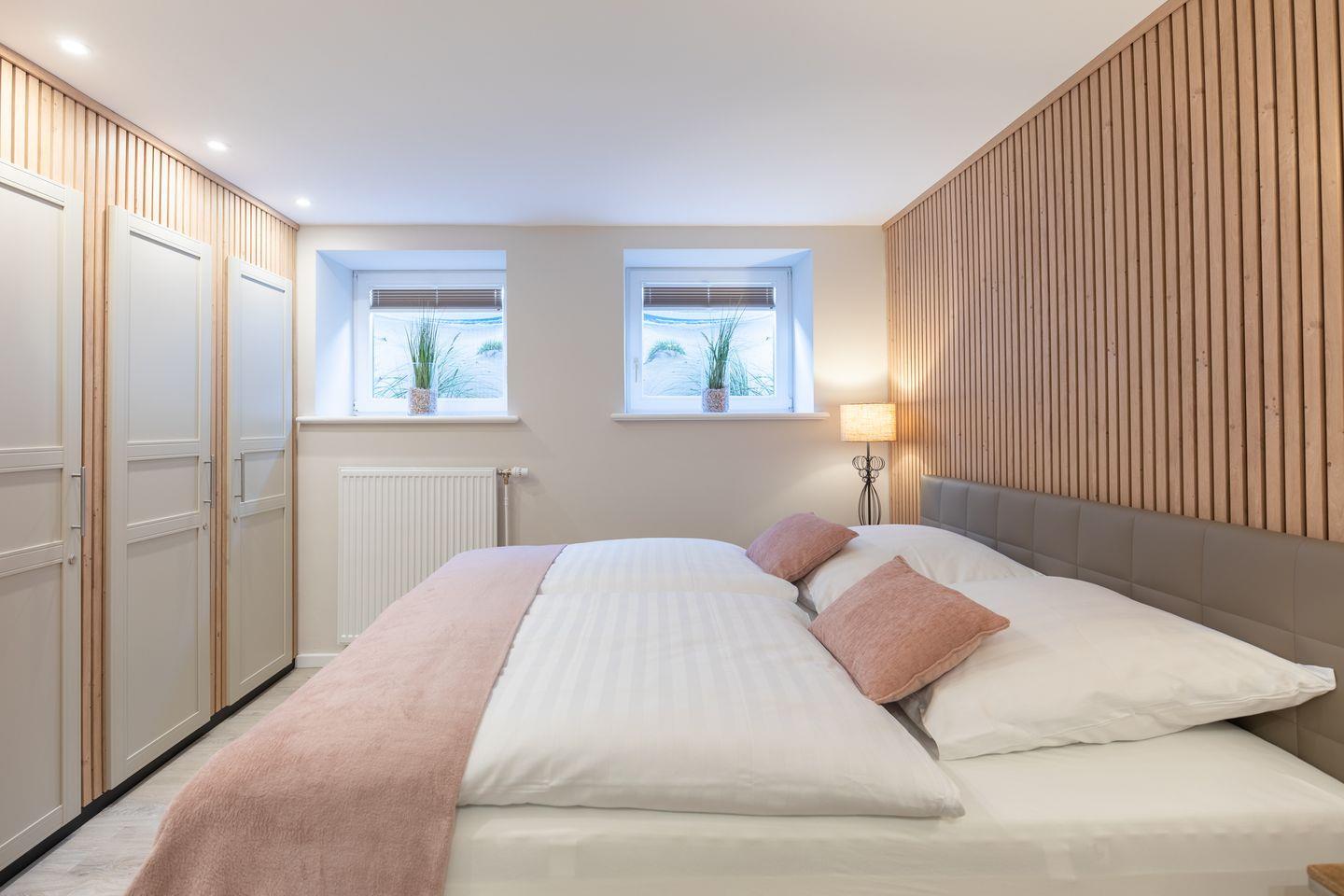 Der Stadtpavillon verfügt über zwei stilvoll eingerichtete Schlafzimmer – beide ausgestattet mit einem komfortablen Boxspringbett (180 × 200 cm) und einem Kleiderschrank. In einem der Schlafzimmer steht Ihnen zusätzlich ein weiterer Fernseher zur Verfügung