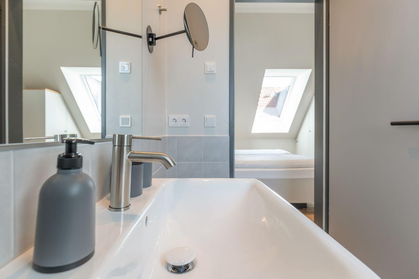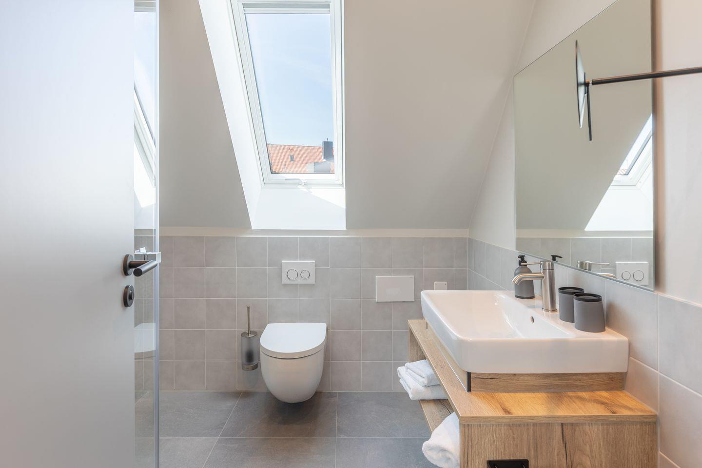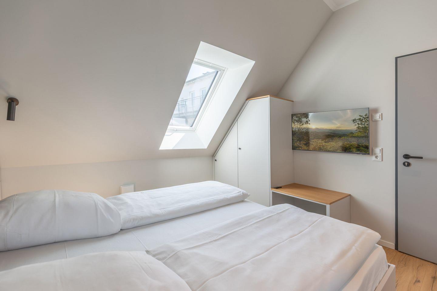 Das Badezimmer verfügt über eine ebenerdige Dusche, WC, Kosmetikspiegel und Föhn. Zudem ist das Apartment komplett mit Fußbodenheizung ausgestattet und bietet im Schlafzimmer Verdunkelungsgardinen für einen entspannten Schlaf. Alle Apartments in den oberen Etagen sind über einen Aufzug erreichbar.