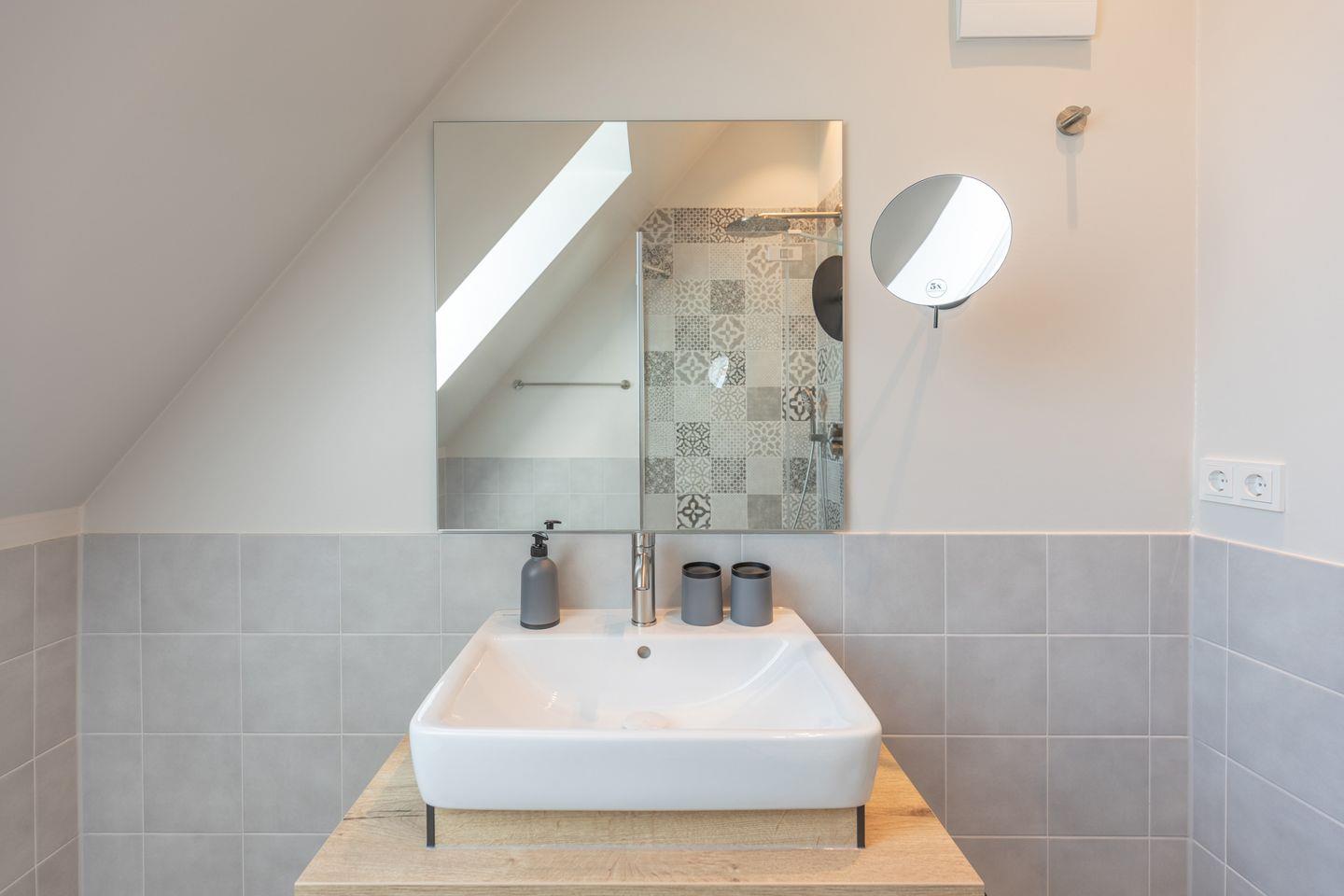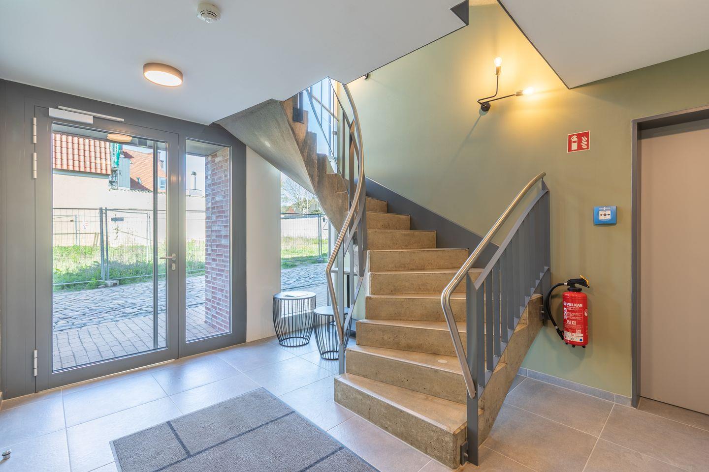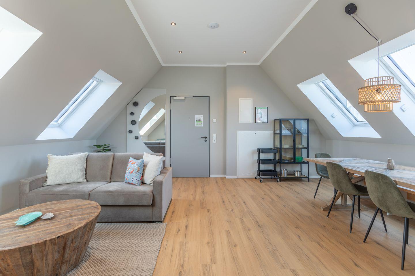 Das Badezimmer verfügt über eine ebenerdige Dusche, WC, Kosmetikspiegel und Föhn. Zudem ist das Apartment komplett mit Fußbodenheizung ausgestattet und bietet im Schlafzimmer Verdunkelungsgardinen für einen entspannten Schlaf. Alle Apartments in den oberen Etagen sind über einen Aufzug erreichbar.